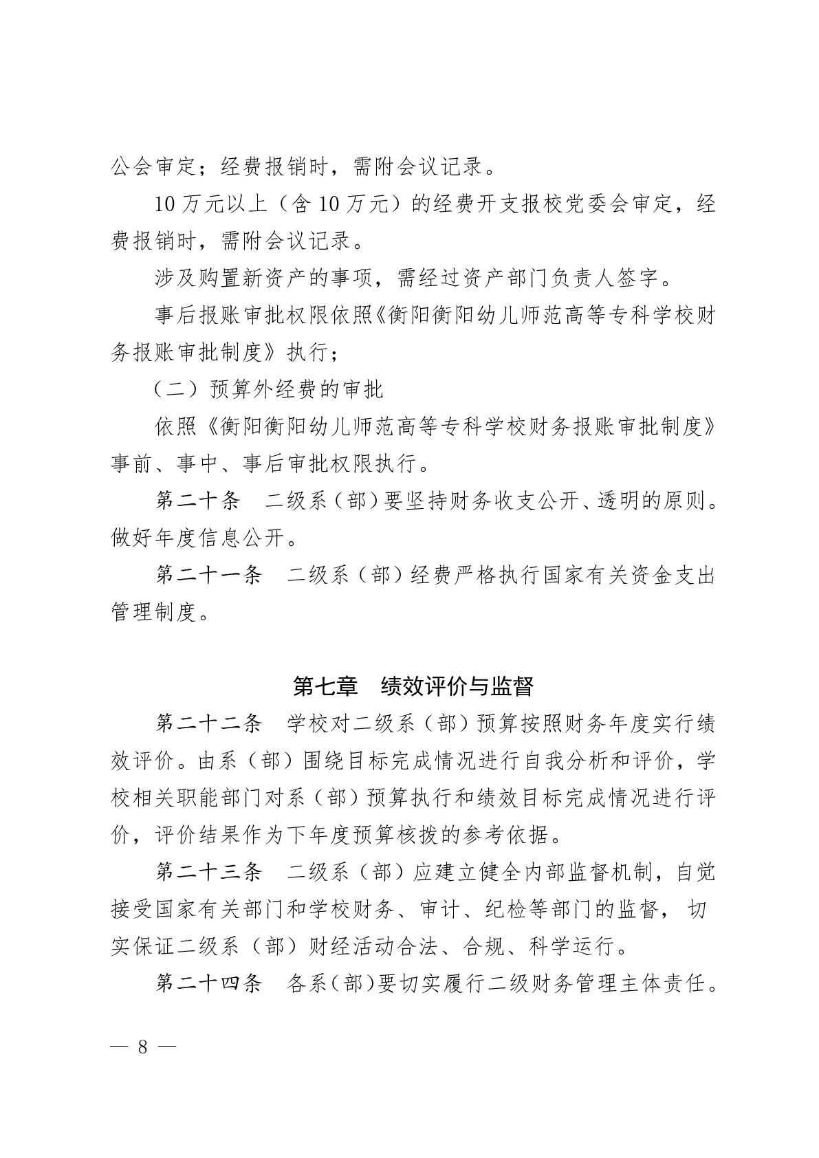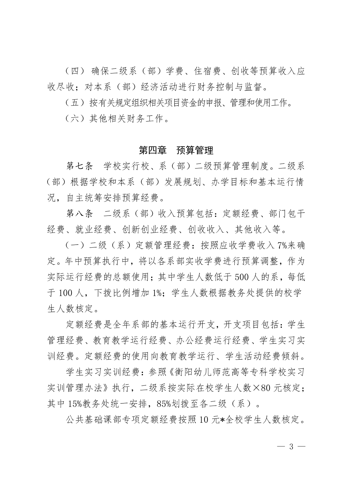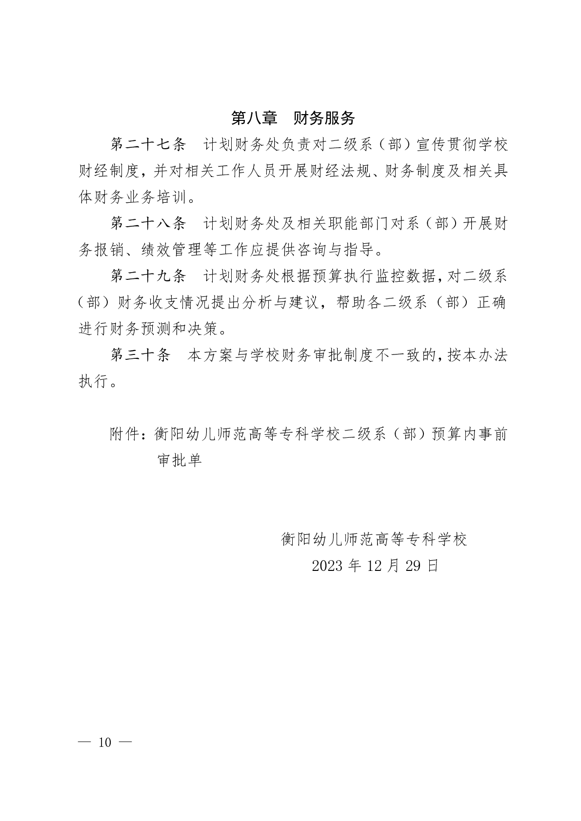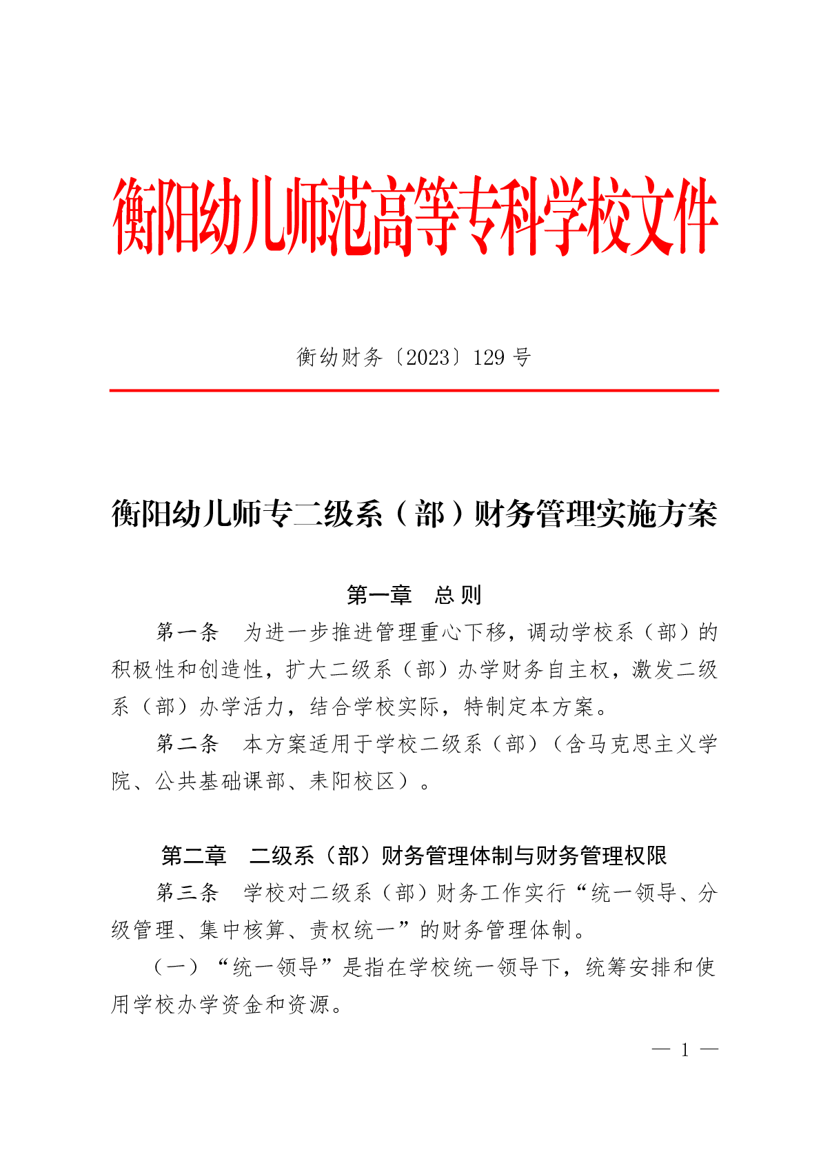 衡幼財務(wù)〔2023〕129號 ?衡陽幼兒師范高等??茖W(xué)校二級系(部)財務(wù)管理實施方案.pdf