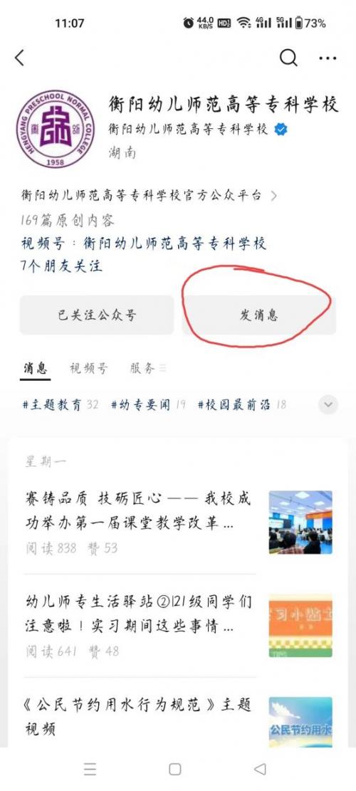 關(guān)注衡陽幼兒師范高等??茖W(xué)校微信公眾號(hào),點(diǎn)擊發(fā)消息,點(diǎn)擊中間智慧平臺(tái)
