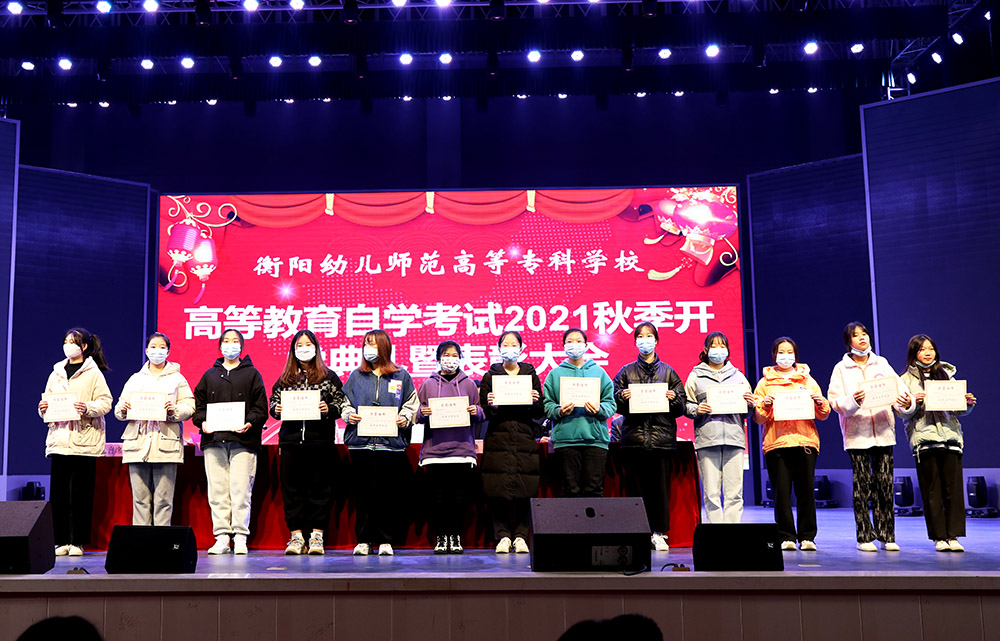 12月16日下午,衡陽幼兒師范高等??茖W校在藝術館召開高等教育自學考試2021年秋季開學典禮暨表彰大會。懷化學院繼續(xù)教育學院院長周文,校長蕭烽,校領導楊安季出席大會,2020級自考老生代表、2021級自考新生代表、耒陽學院學生代表、常寧助學點學生代表參會。大會由繼續(xù)教育學院負責人劉智主持。