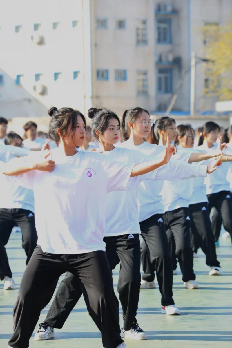 開(kāi)幕式后,大型文體表演閃亮登場(chǎng)。團(tuán)體操表演隊(duì)員的每一次跳躍都盡顯衡陽(yáng)幼兒師專(zhuān)學(xué)子年輕的活力與張揚(yáng)。學(xué)前系獻(xiàn)上中國(guó)舞《驍》,舞蹈結(jié)合爵士和中國(guó)舞,表演現(xiàn)場(chǎng)氣勢(shì)恢宏,通過(guò)舞蹈表達(dá)對(duì)祖國(guó)大好山河的贊美,對(duì)中華兒女保家衛(wèi)國(guó)的贊揚(yáng)。藝術(shù)系民間舞《雨澗春行圖》以江南山水為題,融詩(shī)意入舞,油紙傘緩緩打開(kāi),猶如展開(kāi)了一幅靈動(dòng)生長(zhǎng)的畫(huà)卷,畫(huà)上展現(xiàn)出生機(jī)和希望。春雨稠,心意濃,這是青春年華無(wú)限的美好?!皟墒滞刑炖砣梗笥议_(kāi)弓似射雕……”小學(xué)教育系、數(shù)學(xué)與現(xiàn)代信息技術(shù)系和現(xiàn)代服務(wù)與管理系三百名師生共同表演中國(guó)古代氣功功法---八段錦,一招一式動(dòng)作整齊劃一、動(dòng)靜相宜、剛?cè)岵?jì),激勵(lì)全校師生開(kāi)拓進(jìn)取、團(tuán)結(jié)合作、自強(qiáng)不息,奮勇圖強(qiáng)。