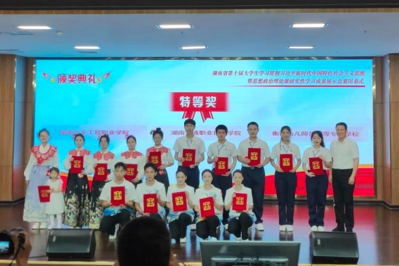 6月2日,湖南省教育廳主辦的第十屆大學(xué)生學(xué)習貫徹習近平新時代中國特色社會主義思想暨思想政治理論課研究性學(xué)習成果展示競賽決賽(高職高專組)在湖南汽車工程職業(yè)學(xué)院落下帷幕。我校喜獲特等獎,在該賽項上取得歷史性突破。