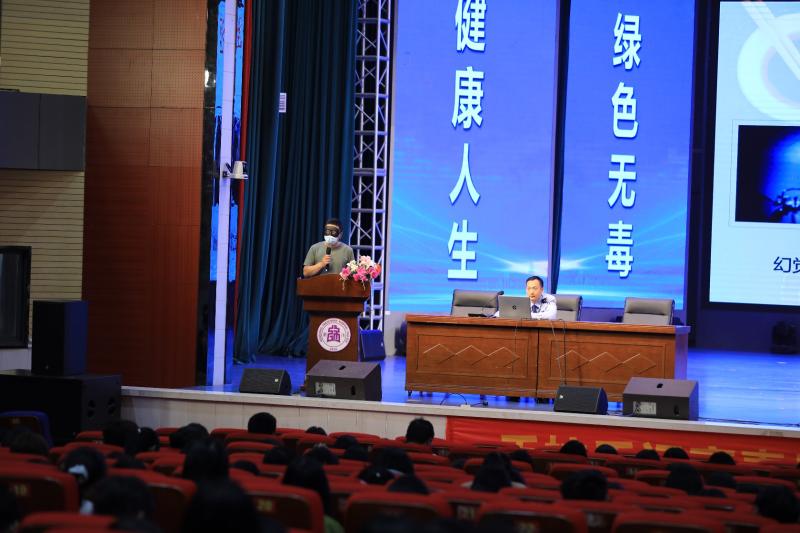雁峰區(qū)禁毒辦、禁毒協(xié)會在學(xué)校大禮堂舉辦了“綠色無毒 健康人生 全民禁毒”的禁毒知識展、禁毒簽名活動和禁毒互動游戲,吸引了廣大師生積極參與。接著,戒毒成功的典型給學(xué)生講述了自己涉毒、戒毒的經(jīng)歷,以現(xiàn)身說法的方式告知青年學(xué)生毒品的巨大危害,呼吁青年學(xué)生增強禁毒意識,遠(yuǎn)離毒品,健康生活。衡陽市強制隔離戒毒所教育科科長、一級警長馬翔給學(xué)生作了禁毒專題講座,詳細(xì)介紹了新型毒品的種類、危害,并以吸毒案例分析對學(xué)生進(jìn)行宣傳教育。