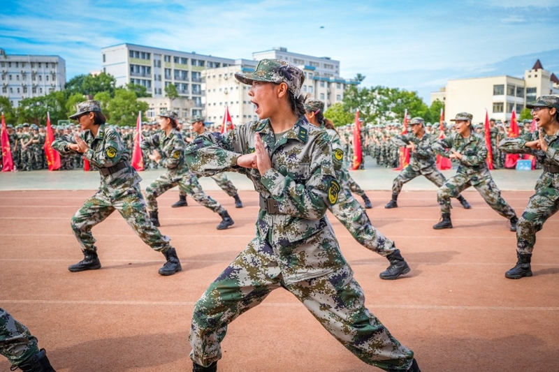 緊接著,承訓教官們帶來精彩的戰(zhàn)術、隊列、軍體拳、刺殺操表演,展現軍人風采,為同學們樹立標桿,贏得熱烈掌聲。