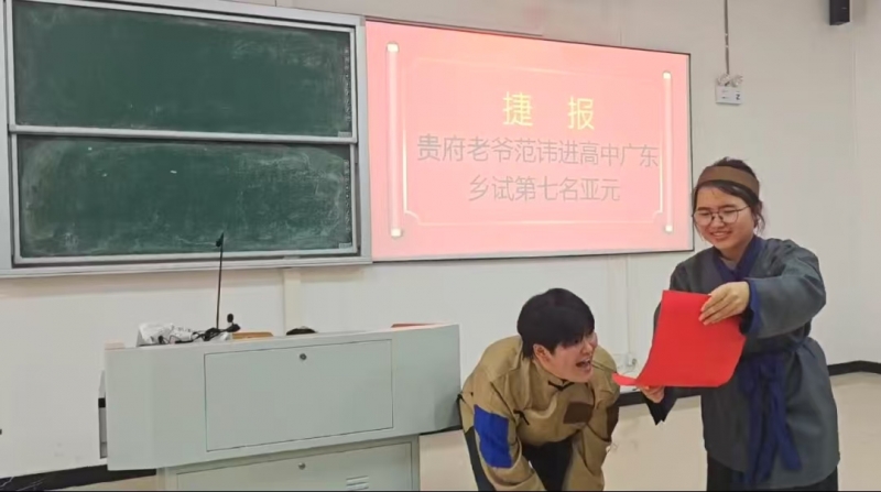 比賽現(xiàn)場(chǎng),各參賽團(tuán)隊(duì)奉獻(xiàn)了精彩紛呈的視聽(tīng)盛宴。演員們深入揣摩人物心理,憑借細(xì)膩的表情、生動(dòng)的臺(tái)詞和到位的肢體語(yǔ)言,將教材中一個(gè)個(gè)經(jīng)典人物形象——從獨(dú)立自強(qiáng)的簡(jiǎn)·愛(ài)到虛榮享樂(lè)的瑪?shù)贍柕?,從迂腐懦弱的范進(jìn)到淡泊守節(jié)的陶淵明,從勇毅前行的劉和珍到豁達(dá)坦然的史鐵生——栩栩如生地呈現(xiàn)于觀眾眼前,情感真摯,感染力十足。