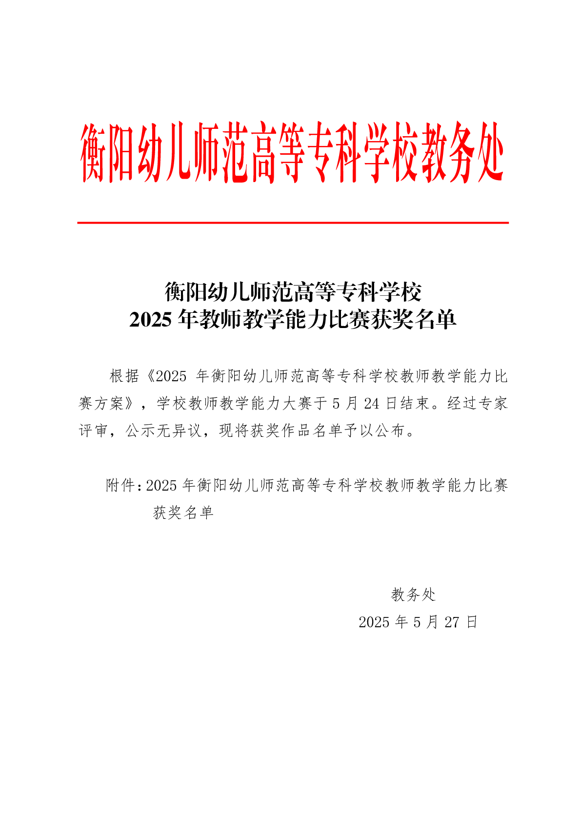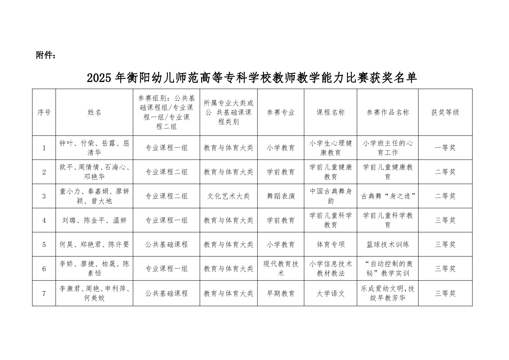 衡陽幼兒師專2025年教師教學能力獲獎作品名單