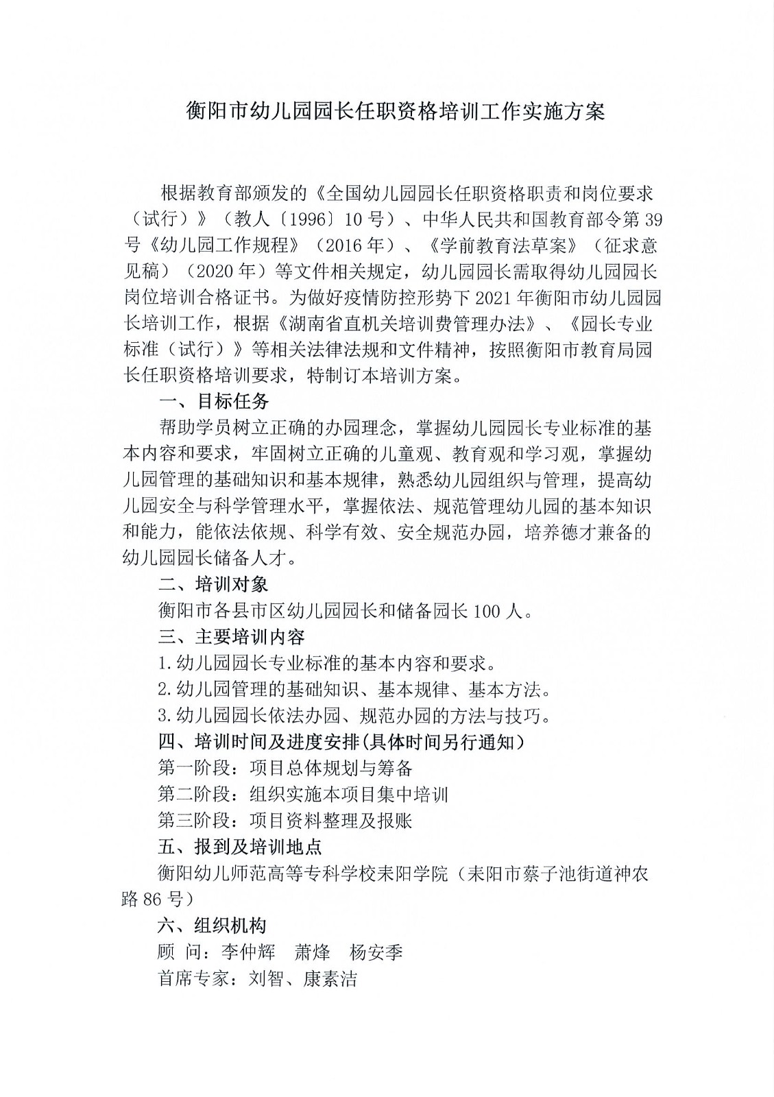 衡陽(yáng)市幼兒園園長(zhǎng)任職資格培訓(xùn)方案(202109)