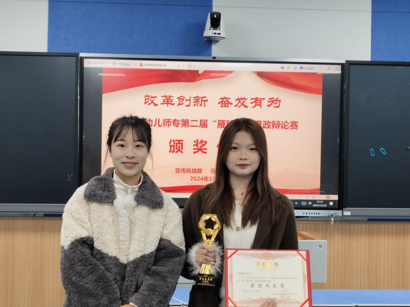12月20日下午,衡陽幼兒師專第二屆"雁鳴杯"思政辯論賽頒獎儀式在學(xué)前B405室舉行。學(xué)校黨委委員、宣傳統(tǒng)戰(zhàn)部部長歐陽曉華,全體獲獎學(xué)生和優(yōu)秀指導(dǎo)老師參加。