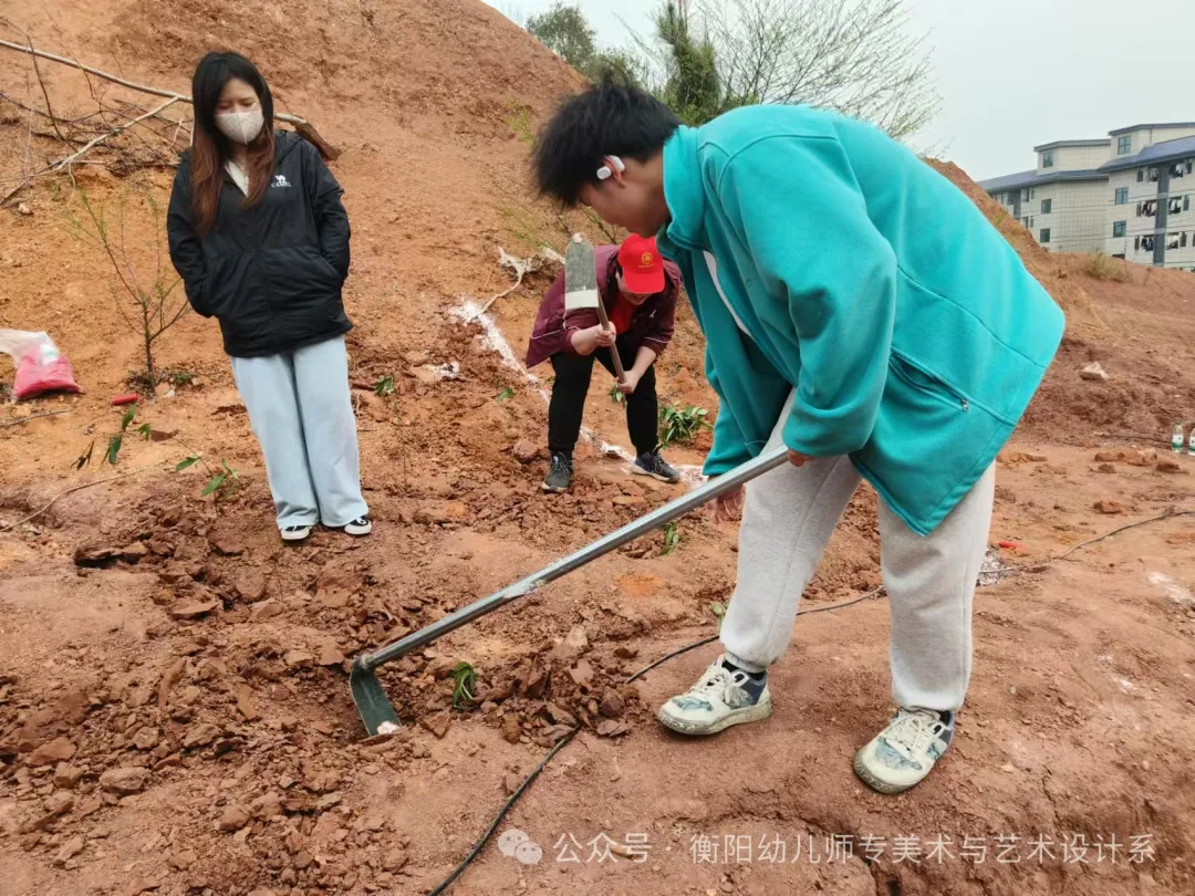 為深化"三全育人"綜合改革,3月26日,衡陽幼兒師范高等??茖W校美術與藝術設計系創(chuàng)新實施"黨建+美育+勞育"融合育人模式,教師黨支部聯合學生黨支部在大禮堂后山開展"藝術林"共建活動。師生以新綠植為畫布,將植樹節(jié)轉化為生動的跨學科實踐課堂,讓生態(tài)文明理念在藝術創(chuàng)作中生根發(fā)芽。