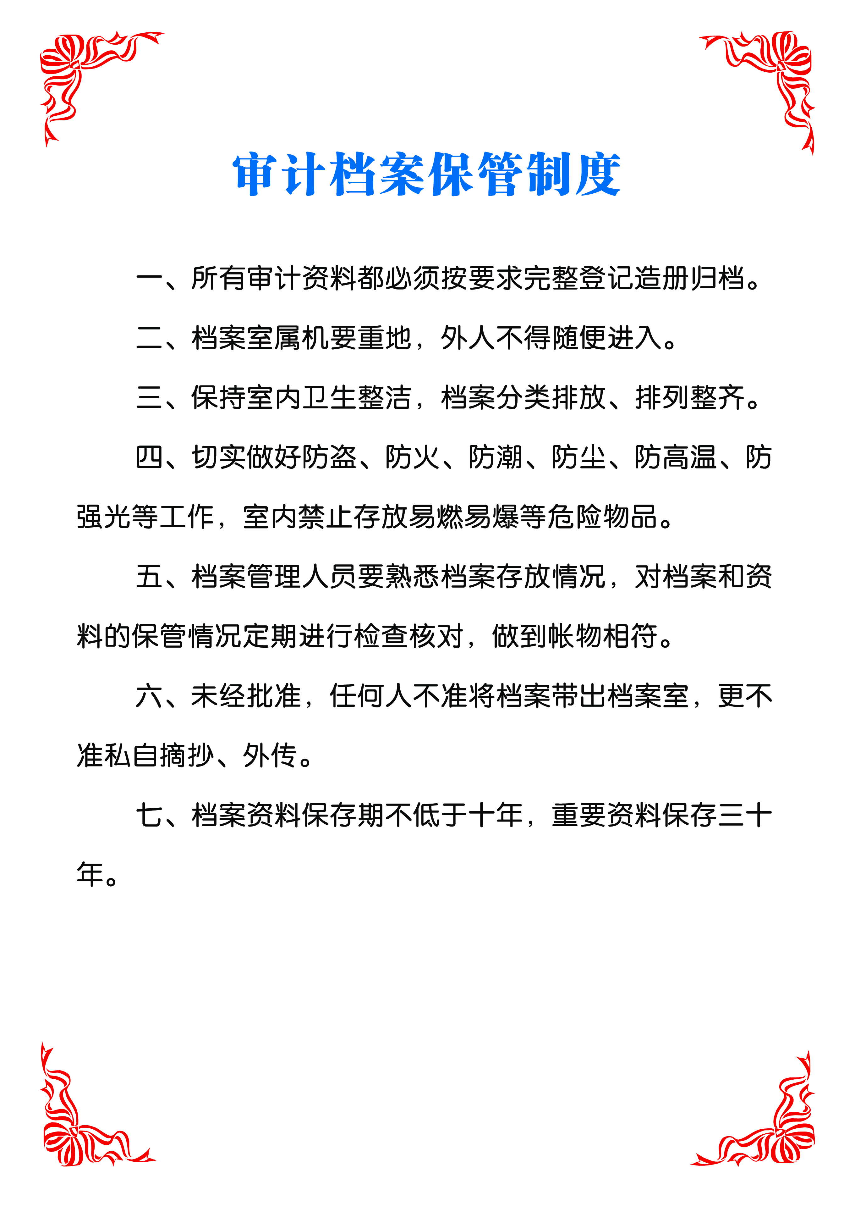 審計(jì)處制度上墻——審計(jì)檔案保管制度