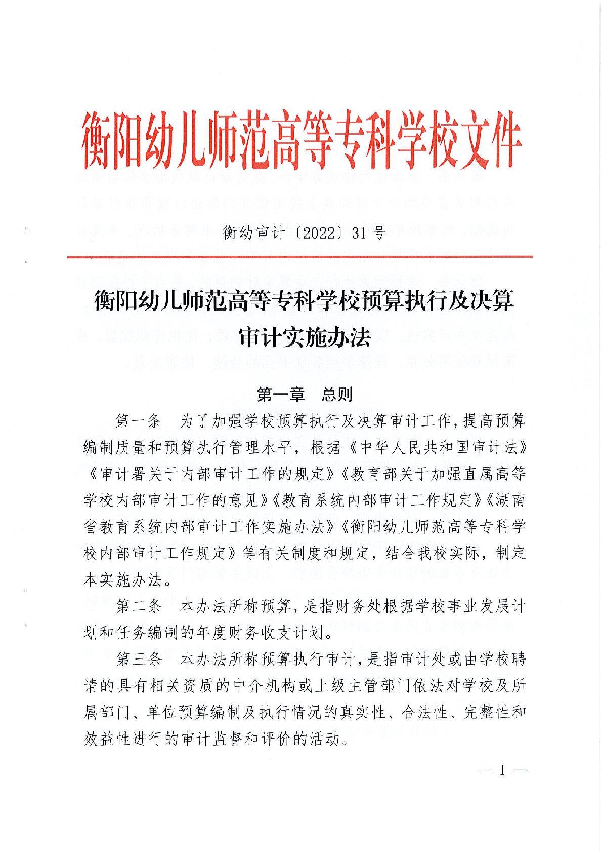 衡陽(yáng)幼兒師范高等??茖W(xué)校預(yù)算執(zhí)行及決算審計(jì)實(shí)施辦法