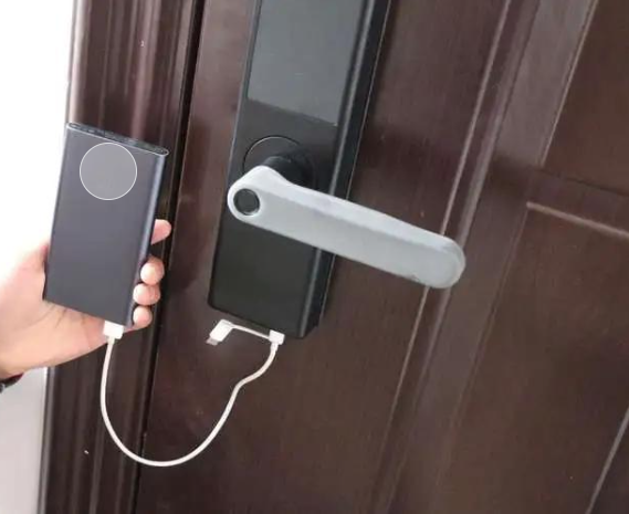 (2)用充電寶應(yīng)急開(kāi)鎖:充電寶插入備用電源口,輸入密碼即可開(kāi)門(mén)。