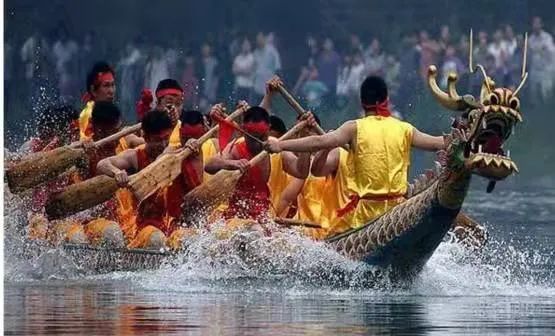 賽龍舟是端午節(jié)的主要習(xí)俗。相傳起源于古時,楚國人因舍不得賢臣屈原投江死去,許多人劃船追趕拯救。他們爭先恐后,追至洞庭湖不見蹤跡。之后每年五月五日劃龍舟以紀(jì)念之。人們借劃龍舟驅(qū)散江中之魚,以免吃掉屈原的身體。競渡之習(xí),盛行于吳、越、楚。