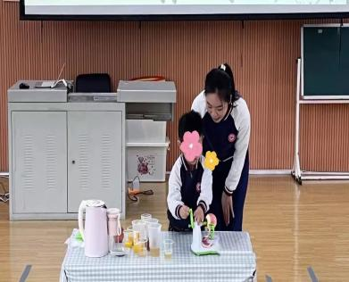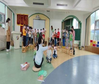 見習(xí)過程中真正學(xué)習(xí)到了關(guān)于班級消毒的完整流程和實(shí)際操作。如擦拭桌子和地板消毒水的配比(1:200),廁所消毒水的配比(1:100),擦拭桌子要用毛巾的不同四個(gè)面,杯子消毒要杯口朝下等等。還有大中小班活動(dòng)組織的差異性。例如針對音樂類游戲,小班是音樂簡單律動(dòng)性強(qiáng),且動(dòng)作較單一重復(fù)性較多易學(xué)習(xí);中班主要是跟唱音樂,動(dòng)作有重復(fù),選取幼兒較熟悉的音樂進(jìn)行游戲;大班的可以跟著音樂進(jìn)行演唱并且動(dòng)作較多,音樂第二遍結(jié)合歌詞內(nèi)容的幼兒動(dòng)作會(huì)隨之改變。