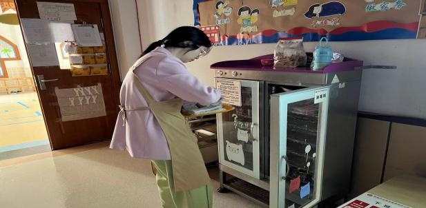 進(jìn)行毛巾消毒的鑫鑫老師