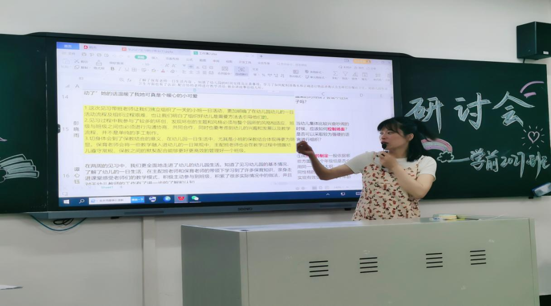 在幼兒園見習(xí)的日子結(jié)束啦,見習(xí)小老師回到學(xué)校重新轉(zhuǎn)換成學(xué)生角色,兩周的見習(xí)我們收獲頗豐,6月1日晚自習(xí)我們組織了見習(xí)研討分享會(huì),一起來看看我們在分享會(huì)上的表現(xiàn)吧!