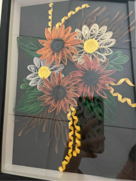 假期,我在小紅書看見用衍紙做的美工作品,覺得特別好看,于是把家里落灰的衍紙拿了出來?,按圖片的步驟一步一步做起來。剛開始只是因?yàn)樾迈r感,到了后面就吃不消了,一朵小小的花就要做幾個(gè)小時(shí)!好在最后也沒有放棄,看到成品時(shí)我頓時(shí)有了滿滿的成就感,也明白了堅(jiān)持的含義!