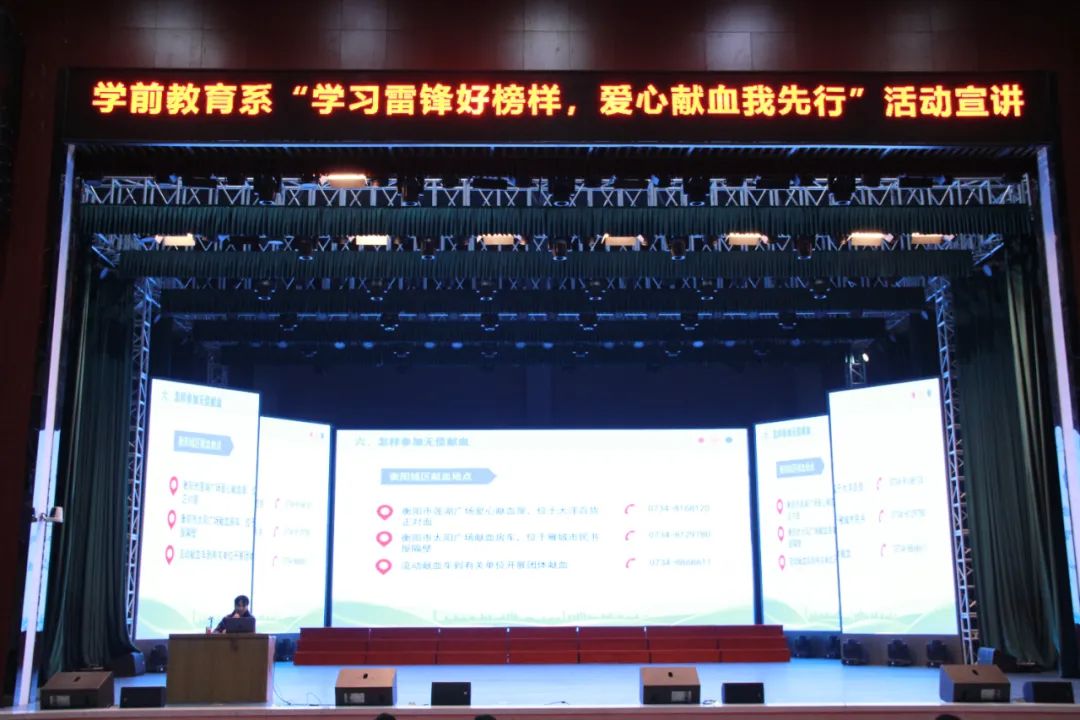 今年3月5日是毛澤東等老一輩革命家為雷鋒同志題詞60周年,為進(jìn)一步傳承雷鋒精神,樹(shù)立時(shí)代新風(fēng),發(fā)揚(yáng)大學(xué)生愛(ài)心奉獻(xiàn)精神。3月1日,學(xué)前教育系在大禮堂舉行了無(wú)償獻(xiàn)血知識(shí)宣講。本次宣講邀請(qǐng)了衡陽(yáng)市中心血站陳敏老師到現(xiàn)場(chǎng)為同學(xué)們講解無(wú)償獻(xiàn)血知識(shí)。