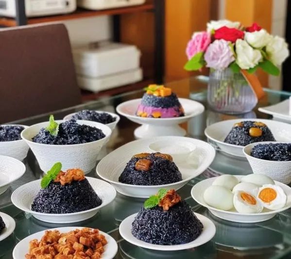 浙江、江蘇、湖北、湖南、江西、安徽等地,人們?nèi)匀槐A糁⑾某詾趺罪埖墓爬狭?xí)俗,烏米飯是一種紫黑色的糯米飯,是采集野生植物烏桕樹的葉子煮湯,用此湯將糯米浸泡半天,然后撈出放入大甑里蒸熟而成。