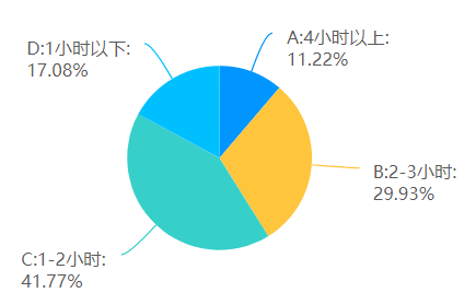 根據(jù)調(diào)查結(jié)果顯示,我系超八成的學(xué)生在課余時(shí)間仍然能夠主動(dòng)學(xué)習(xí),這表明部分學(xué)生擁有較強(qiáng)的自主學(xué)習(xí)能力;但有約17.08%學(xué)生主動(dòng)學(xué)習(xí)時(shí)間較少,可能會(huì)導(dǎo)致完成自己學(xué)業(yè)的同時(shí)仍然存在一定的知識(shí)缺陷。我系將以學(xué)風(fēng)建設(shè)為契機(jī),檢查并督促學(xué)生培養(yǎng)自覺(jué)學(xué)習(xí)、深究知識(shí)的良好習(xí)慣,從而增強(qiáng)學(xué)生自主學(xué)習(xí)的能力。