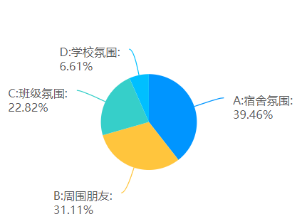 調(diào)查結(jié)果顯示,認(rèn)為宿舍氛圍影響最大的學(xué)生最多。良好的學(xué)習(xí)氛圍對(duì)人有熏陶作用和約束作用,當(dāng)我們置身濃濃的學(xué)習(xí)氛圍之中,潛移默化得就會(huì)對(duì)學(xué)習(xí)產(chǎn)生興趣。我系將會(huì)多舉行關(guān)于學(xué)習(xí)的活動(dòng),讓同學(xué)們?cè)诹己玫膶W(xué)習(xí)氛圍下樹(shù)立正確的發(fā)展道路,做到朋友、室友之間共同努力、攜手共進(jìn)的美好局面。