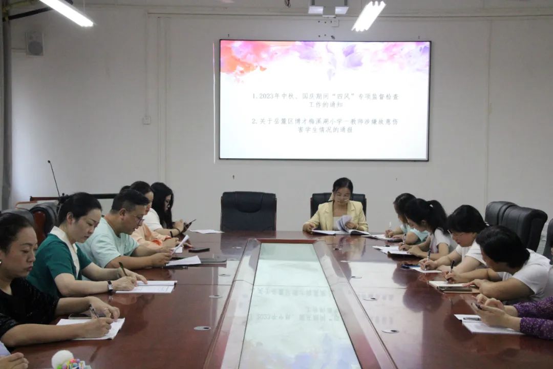 會(huì)議第二項(xiàng),馬奕斌帶領(lǐng)全體教師解讀《關(guān)于岳麓區(qū)博才梅溪湖小學(xué)一教師涉嫌故意傷害學(xué)生情況的通報(bào)》,為貫徹落實(shí)教育部、省委省政府領(lǐng)導(dǎo)批示精神,切實(shí)加強(qiáng)師德師風(fēng)建設(shè)和學(xué)生安全管理,馬奕斌進(jìn)一步向大家剖析《通報(bào)》中的工作要求:一是各地個(gè)學(xué)校要切實(shí)將教師師風(fēng)建設(shè)與學(xué)生安全管理工作緊抓不放;二是各地應(yīng)嚴(yán)把教師隊(duì)伍入口質(zhì)量關(guān);三是建立師德失范風(fēng)險(xiǎn)發(fā)現(xiàn)機(jī)制,排查問題隱患;四是進(jìn)一步嚴(yán)格規(guī)范教師從教行為,細(xì)化制定教職員工日常教育管理制度與教育教學(xué)行為規(guī)范;五是建立健全教學(xué)設(shè)施設(shè)備管理制度;六是落實(shí)師德師風(fēng)問題報(bào)告與線索核查機(jī)制;七是健全應(yīng)急處理機(jī)制。