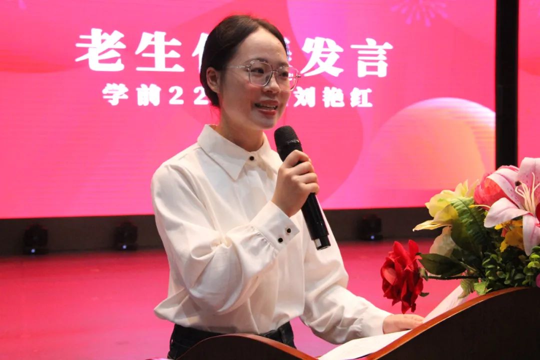 老生代表學(xué)前2215班劉艷紅結(jié)合自身成長經(jīng)歷,分享了她在大學(xué)的一些寶貴經(jīng)驗(yàn),從自身經(jīng)歷出發(fā),勉勵同學(xué)們要勤奮學(xué)習(xí),在學(xué)好專業(yè)知識的同時,要積極加入學(xué)生組織、參加社會實(shí)踐,多方面的鍛煉自己,為成為一名合格的人民教師而努力奮斗!