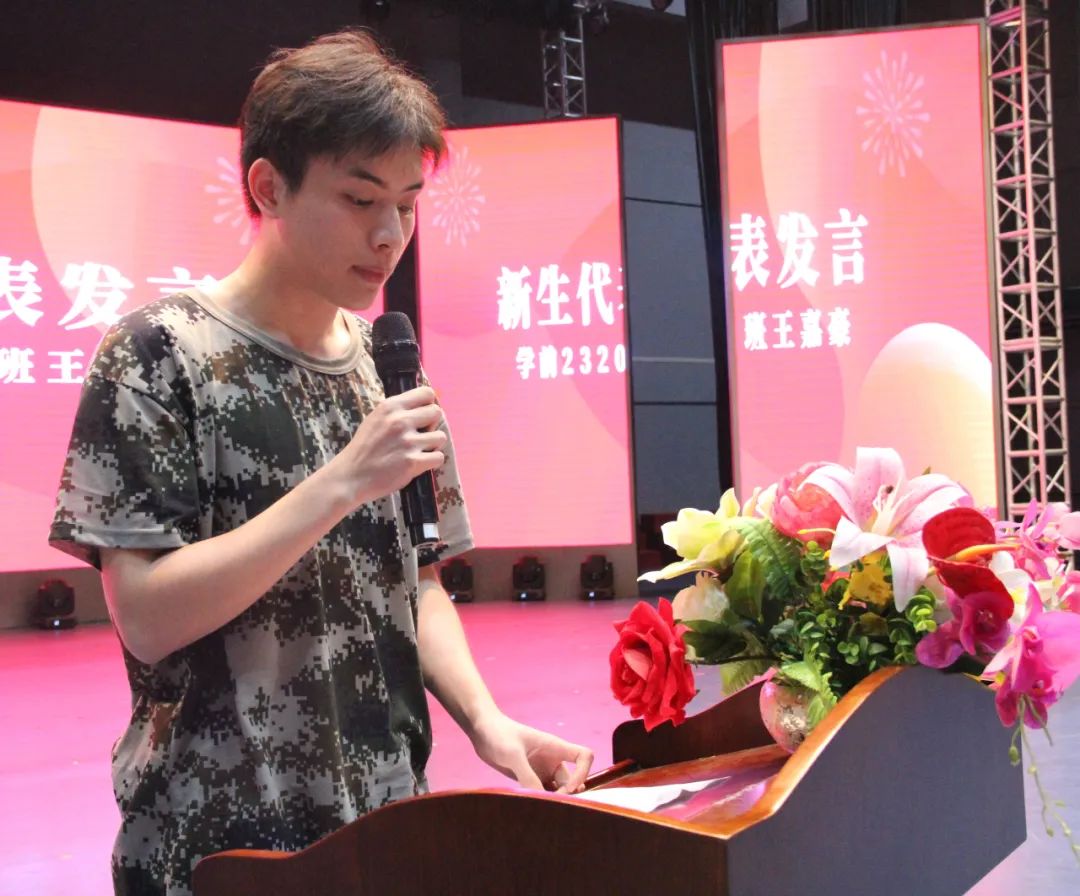 新生代表學(xué)前2320班王嘉豪提出在大學(xué)生活中要不斷提高自身綜合素質(zhì)。作為新時代大學(xué)生,不僅要有專業(yè)知識,還要有高尚的道德情操,同時要通過自身不斷努力,實(shí)現(xiàn)自身價值,成為一名合格的人民教師。