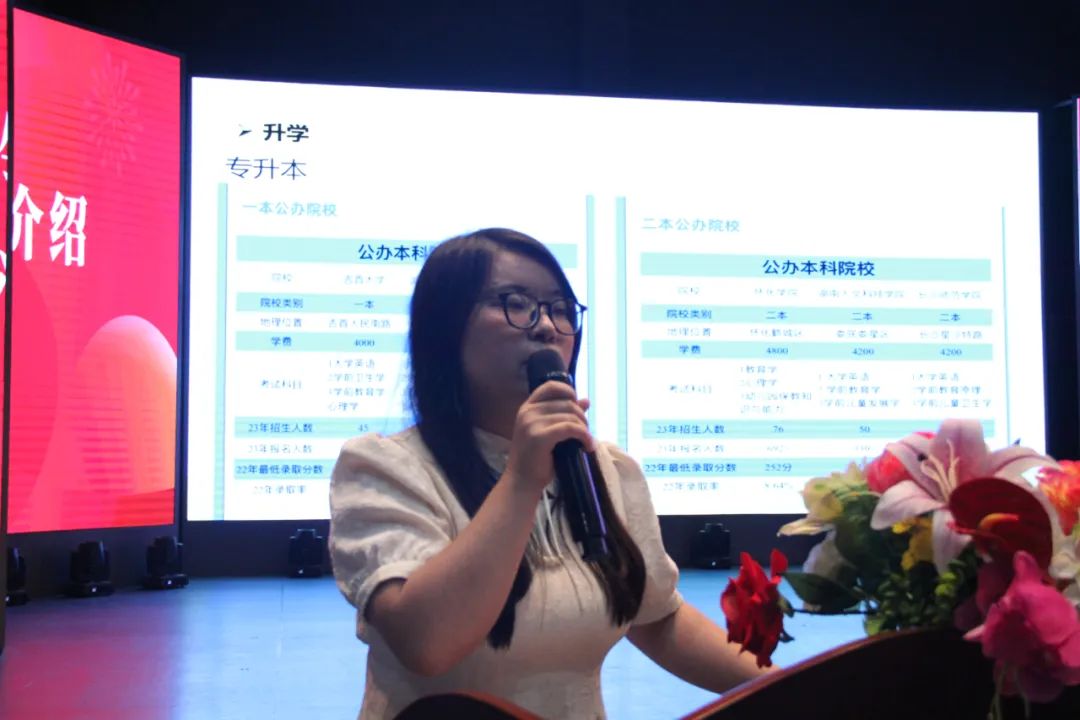 為了讓同學(xué)們更充分的了解自己的專業(yè),邀請到優(yōu)秀的專業(yè)老師分會場進(jìn)行專業(yè)引領(lǐng)介紹。學(xué)前教育專業(yè)謝少封老師為大家詳細(xì)解讀了學(xué)前教育專業(yè)的就業(yè)背景,學(xué)前教育就業(yè)方向比如多元化教育、特殊教育和心理輔導(dǎo),對于考證升學(xué)謝老師建議大家規(guī)劃好大學(xué)的目標(biāo)為專升本做準(zhǔn)備。早期教育專業(yè)歐平老師為大家介紹了早期教育的專業(yè)背景、專業(yè)發(fā)展前景主要以“嬰幼兒照護(hù)”“早期教育機(jī)構(gòu)”為主;專業(yè)核心課程主要包括了“嬰幼兒心理學(xué)”“嬰幼兒游戲指導(dǎo)”“嬰幼兒感統(tǒng)訓(xùn)練”等課程及課外實(shí)踐。讓同學(xué)們清晰地認(rèn)識到了早教專業(yè)的基礎(chǔ)知識及發(fā)展方向,進(jìn)一步促進(jìn)了同學(xué)們對早教專業(yè)的理解與認(rèn)知。同時也邀請到了21級的學(xué)姐們?yōu)榇蠹覀魇谧约旱慕?jīng)驗(yàn)。