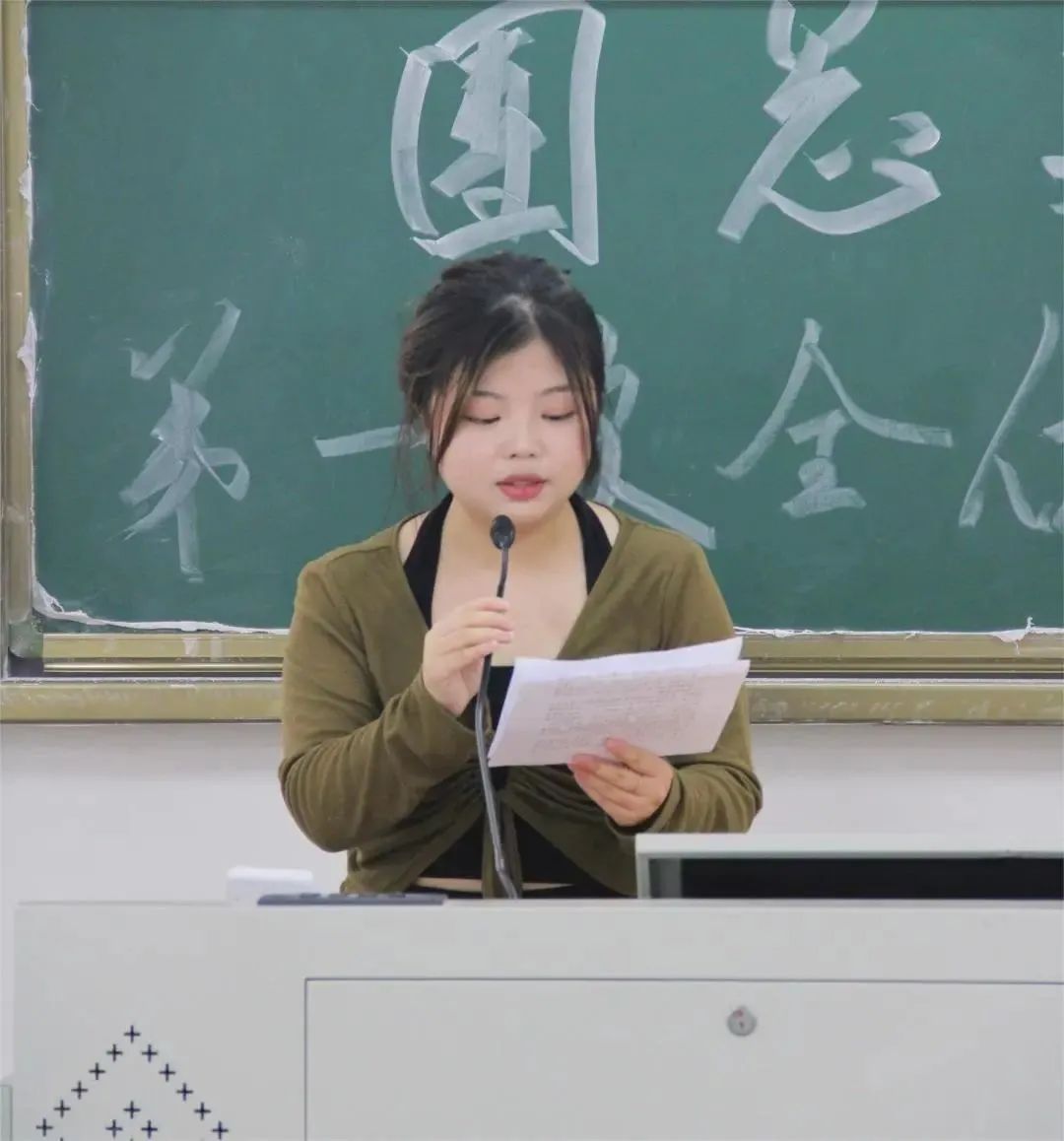 會議第三項,團總支指導老師陳思羽講話。她對團總支工作作了總結(jié)和發(fā)展規(guī)劃,給新涌進的團支部成員提出了虛心、盡心、愛心的“三個心”的要求,以及全面履行“攜手共進,群策群力,打造出一群強勁的團總支干部隊伍”的期望。