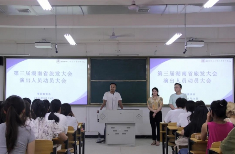 為圓滿籌備旅發(fā)大會(huì)開(kāi)幕式演出,并進(jìn)一步提升青年學(xué)生工作服務(wù)品質(zhì),學(xué)前教育系于8月28日中午隆重召開(kāi)了“第三屆湖南省旅發(fā)大會(huì)演出人員動(dòng)員大會(huì)”。此次大會(huì)匯聚了66名滿懷激情的演出學(xué)生,共同為即將到來(lái)的盛會(huì)蓄勢(shì)待發(fā)。學(xué)前教育系黨總支書記鄧艷華與專職副書記馬奕斌出席會(huì)議,學(xué)工辦吳鵬老師擔(dān)任會(huì)議主持,引領(lǐng)全場(chǎng)氛圍。