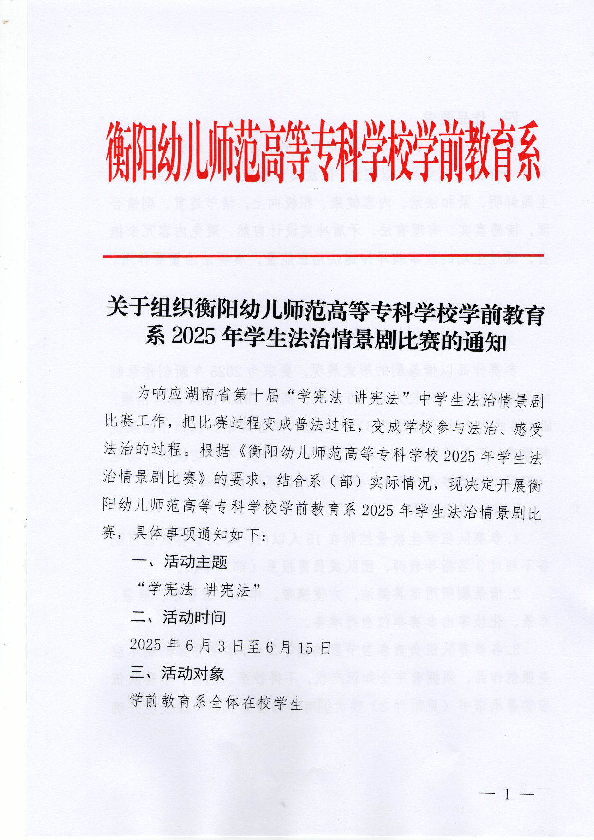 關(guān)于組織衡陽幼兒師范學(xué)校學(xué)前教育系2025年學(xué)生法治情景劇比賽的通知