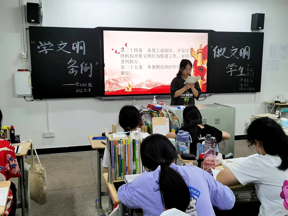 5月8日,我校以班級為單位,由輔導(dǎo)員、班主任組織學(xué)生開展學(xué)習(xí)宣傳《條例》主題班會,通過教師講解、學(xué)生自主講評、交流討論等多種形式對學(xué)生進(jìn)行文明教育。此外,我校充分利用官網(wǎng)、微信公眾號、宣傳櫥窗、電子顯示屏、校園廣播等宣傳陣地,廣泛開展學(xué)習(xí)《條例》宣傳活動,營造濃厚的學(xué)習(xí)氛圍;利用教職工集中學(xué)習(xí)、傳唱《文明條例我來講》《衡陽衡陽我的家》等形式在廣大師生中深入宣傳《條例》,讓師生熟悉《條例》內(nèi)容,讓《條例》入腦入心。