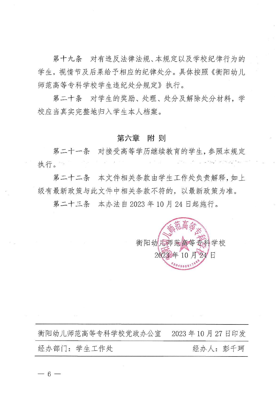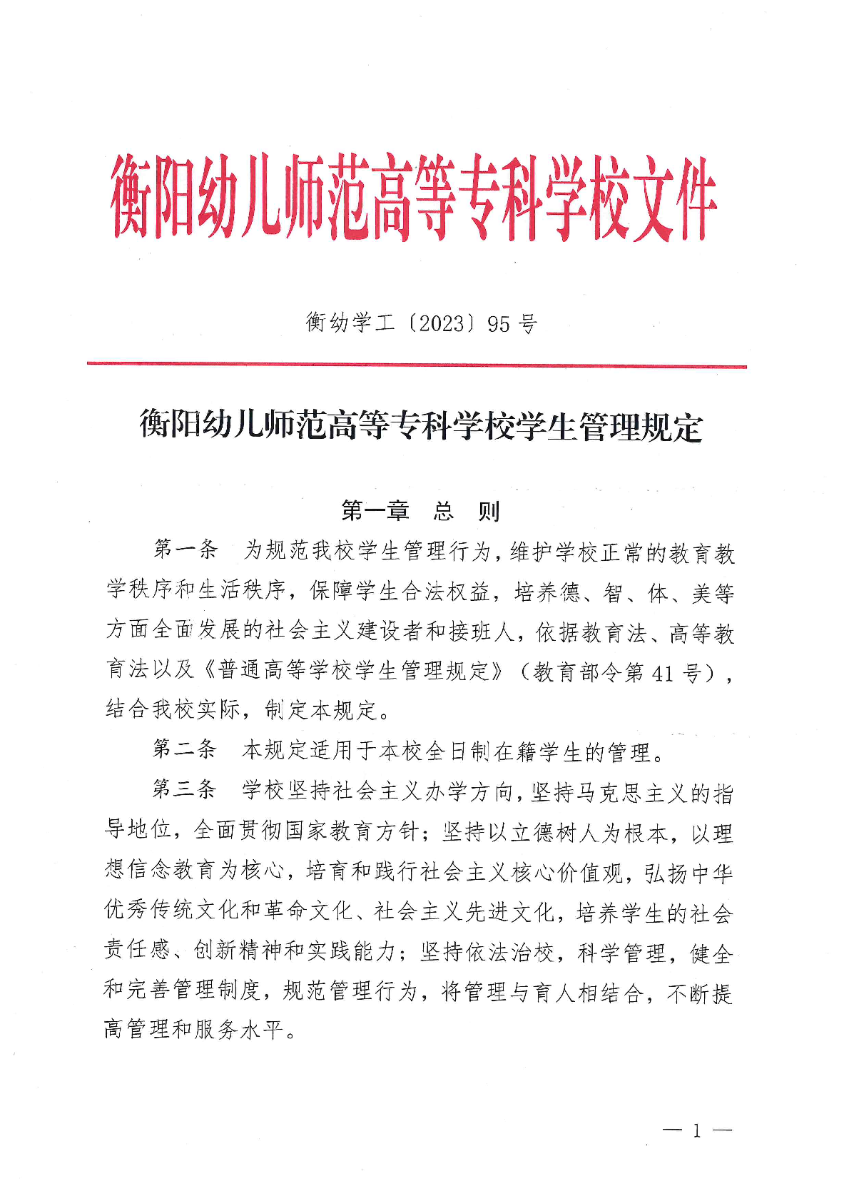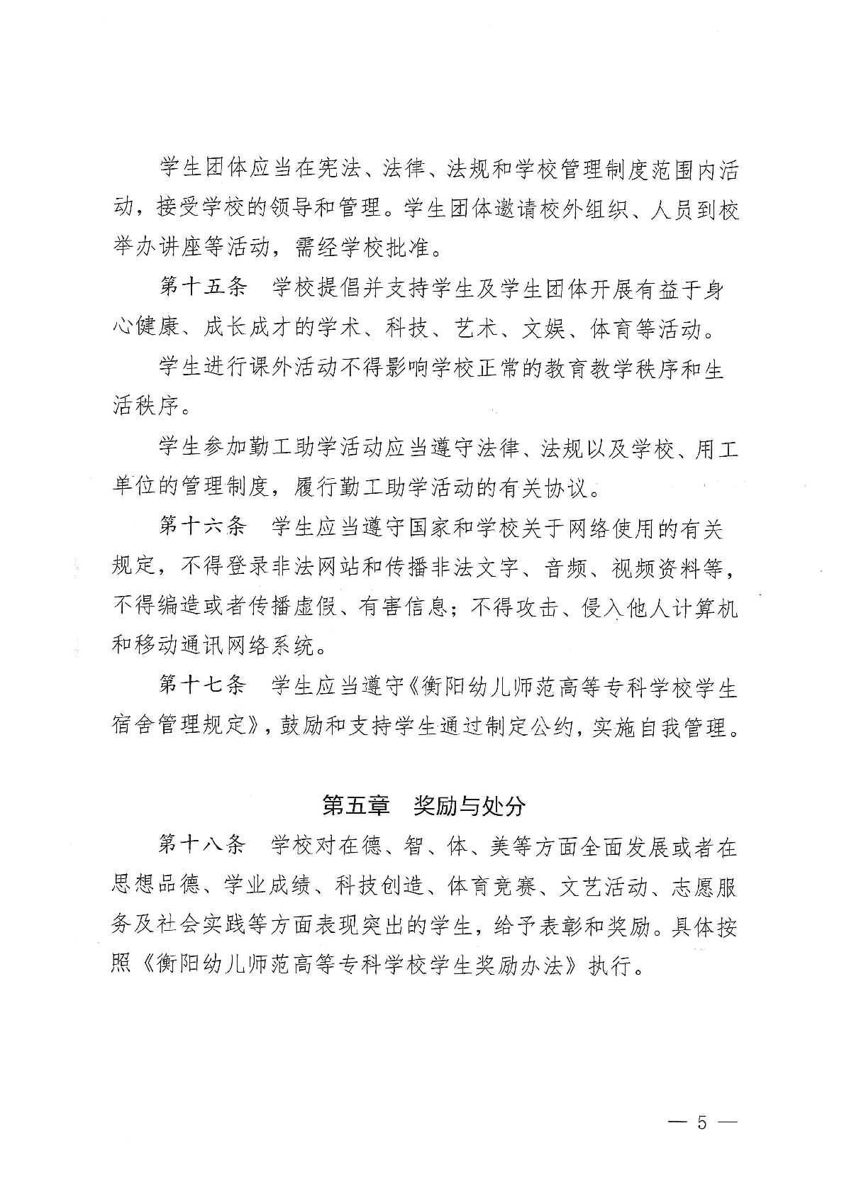 衡陽幼兒師范高等專科學校學生管理規(guī)定