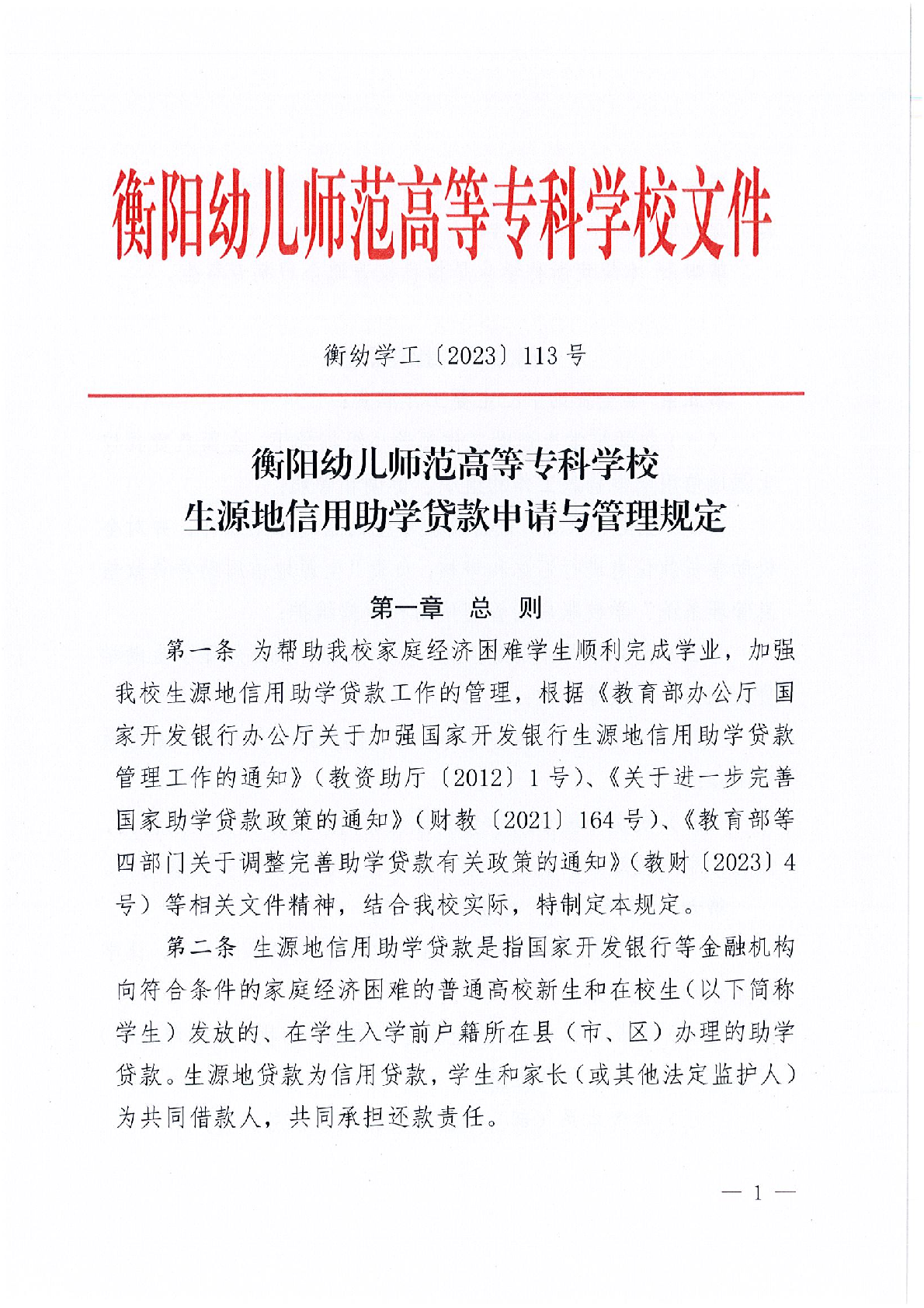 衡陽幼兒師范高等??茖W校助學貸款申請與管理規(guī)定