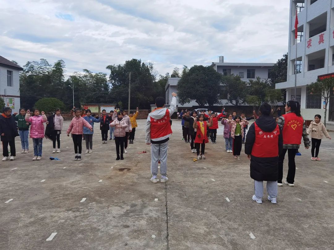為了進(jìn)一步落實(shí)結(jié)對幫扶工作,在2021年11月9日的中午,我們小教、數(shù)理學(xué)院組織了一批“同心牽手”支教志愿者再次乘大巴來到了常寧市洋泉鎮(zhèn)同心村杉樹完小。不同于上次的調(diào)研,在這次活動(dòng)中,我們組織了老師志愿者和學(xué)生志愿者開展了第一次課后服務(wù)志愿活動(dòng):課間律動(dòng)、趣味武術(shù)、花式跳繩、小小主持人等。