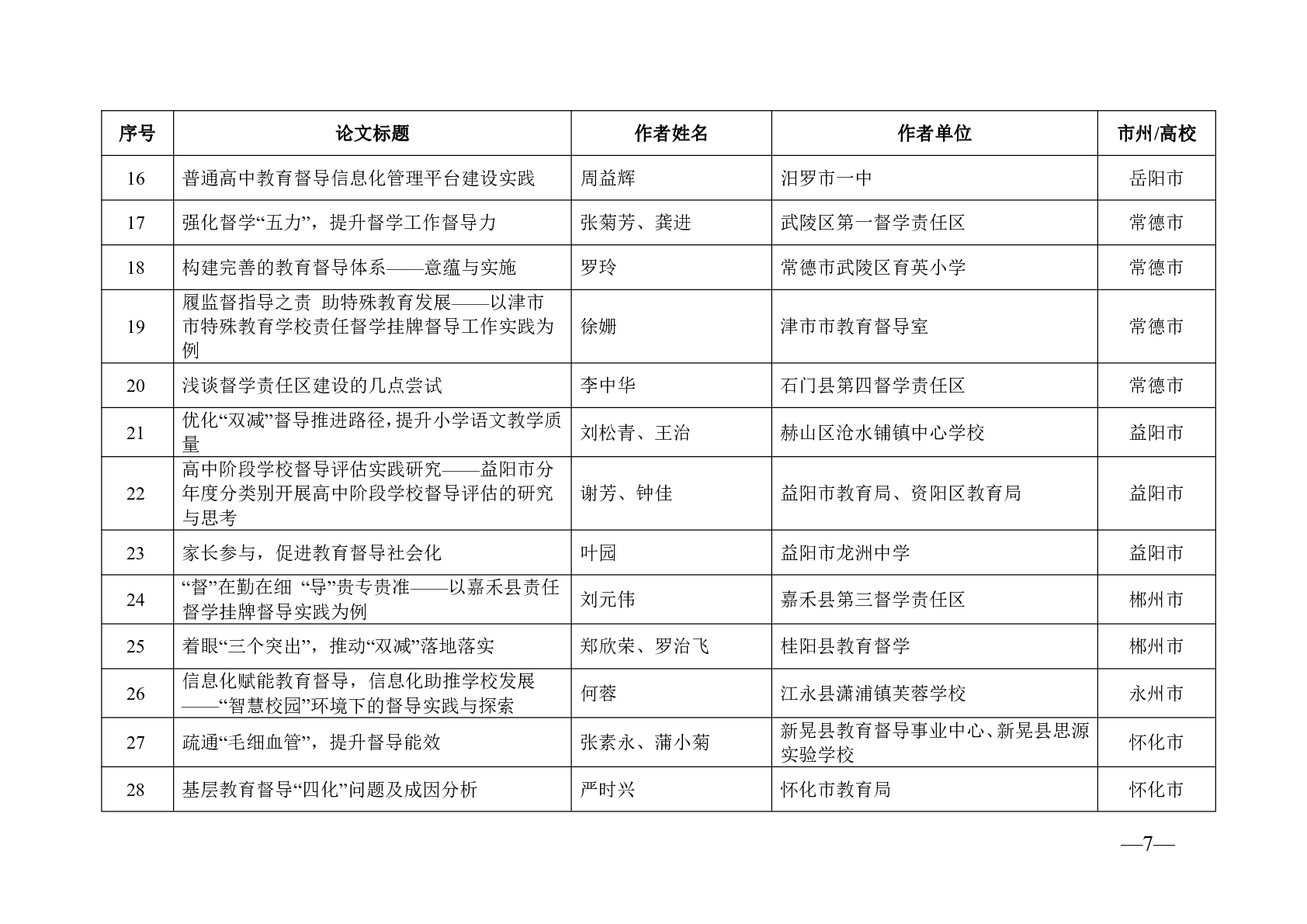 轉(zhuǎn)發(fā)關(guān)于2022年度湖南省教育督導(dǎo)與評(píng)價(jià)優(yōu)秀論文評(píng)選結(jié)果的通報(bào)