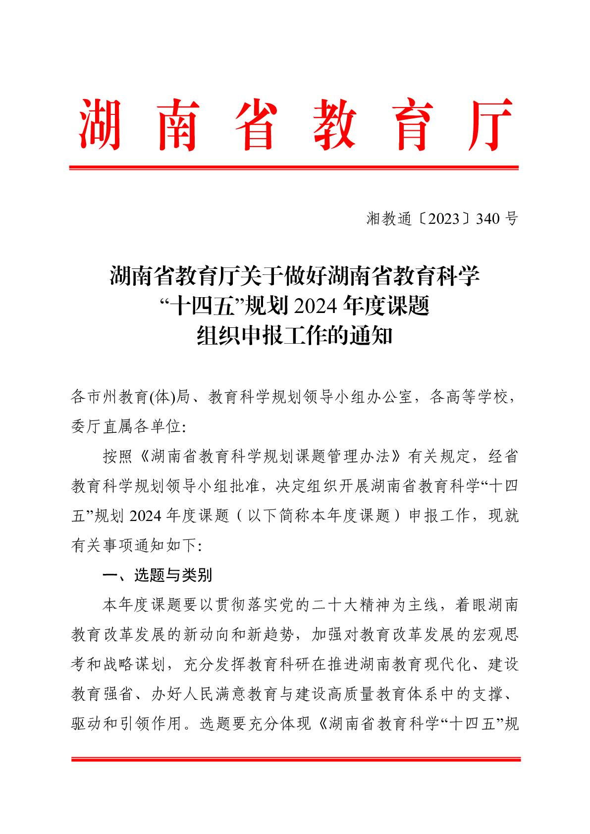 1.關(guān)于做好湖南省教育科學(xué)“十四五”規(guī)劃2024年度課題組織申報工作的通知正文.pdf