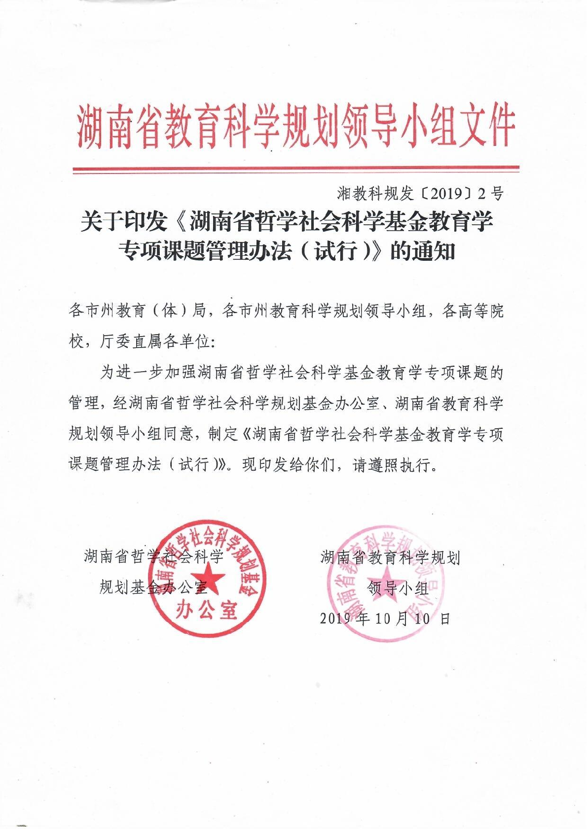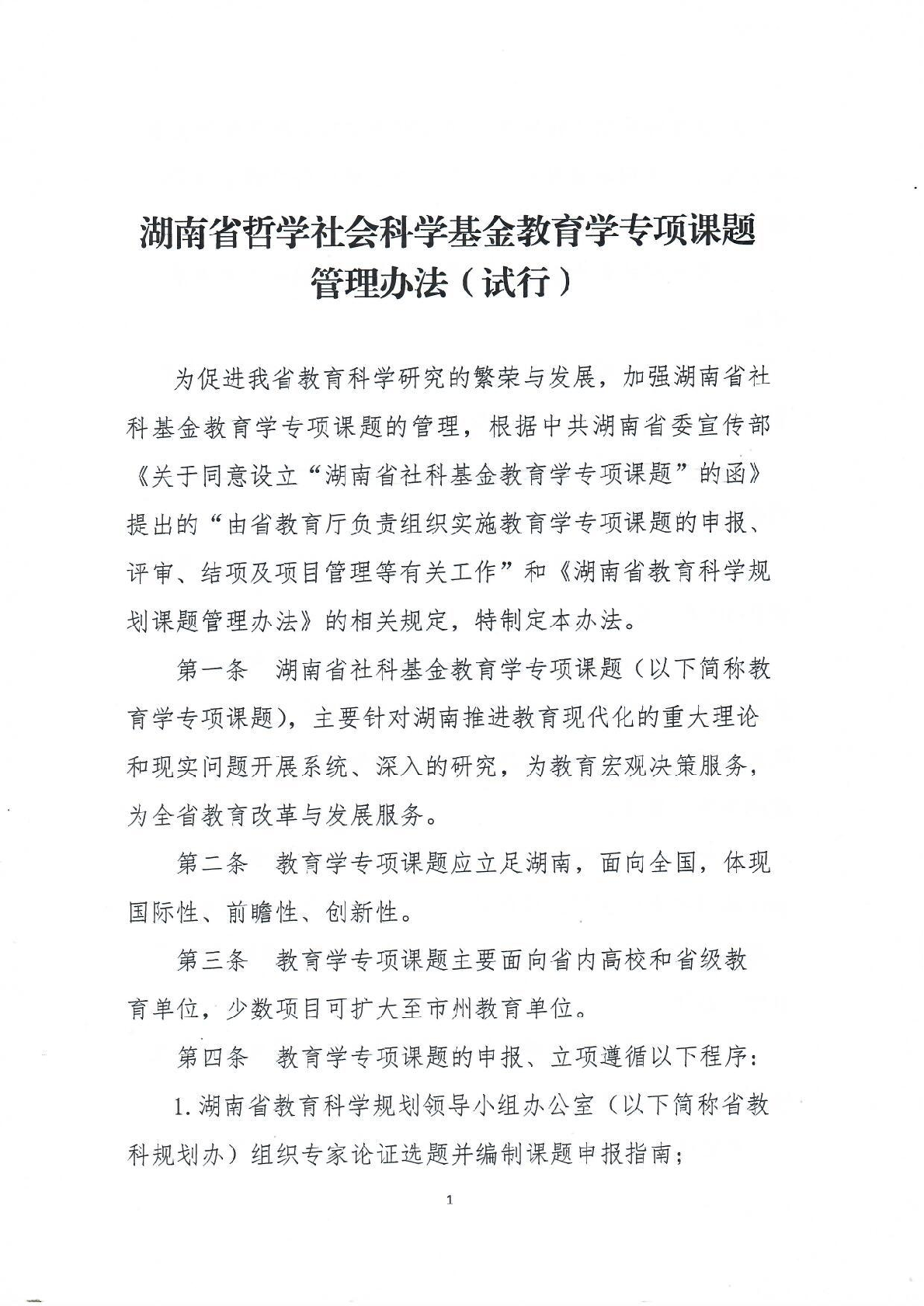 《湖南省哲學(xué)社會科學(xué)基金教育學(xué)專項課題管理辦法(試行)》-湘教科發(fā)[2019]2號.pdf