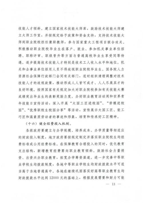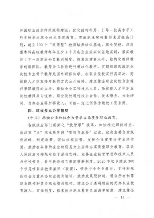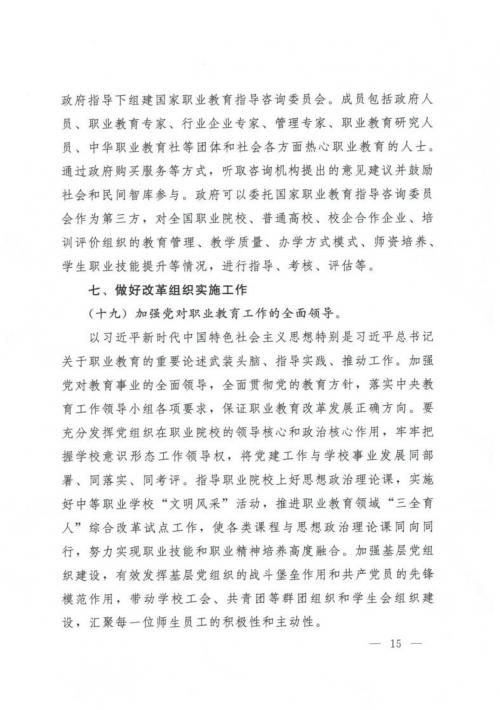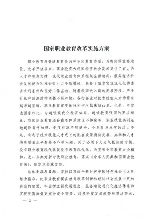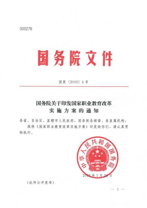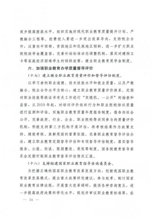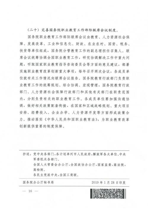 國務(wù)院關(guān)于印發(fā)國家職業(yè)教育改革實施方案的通知