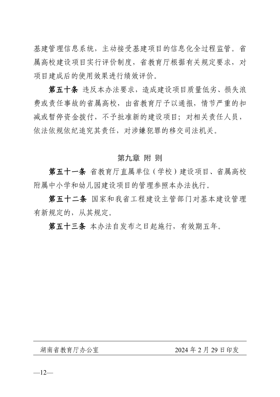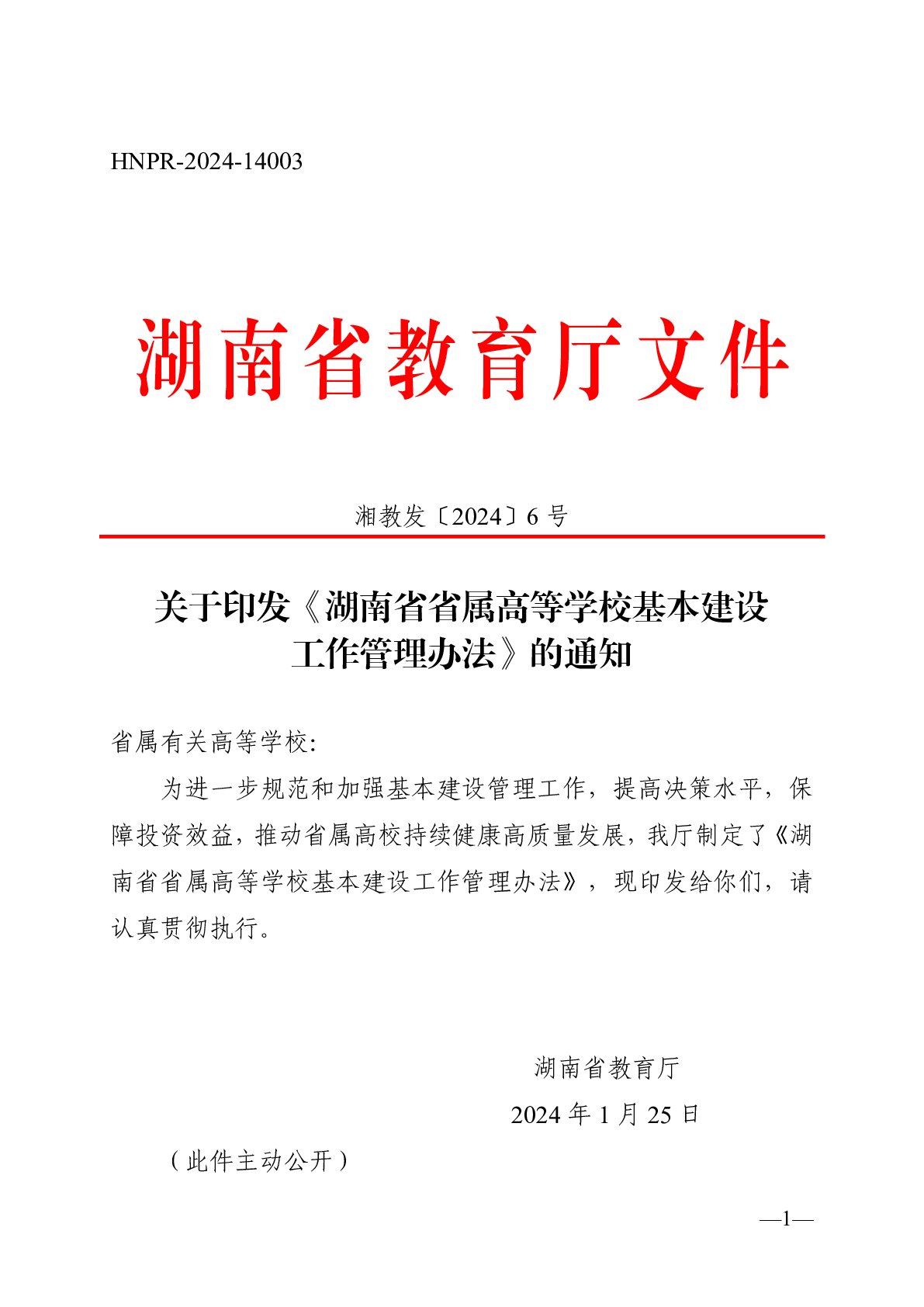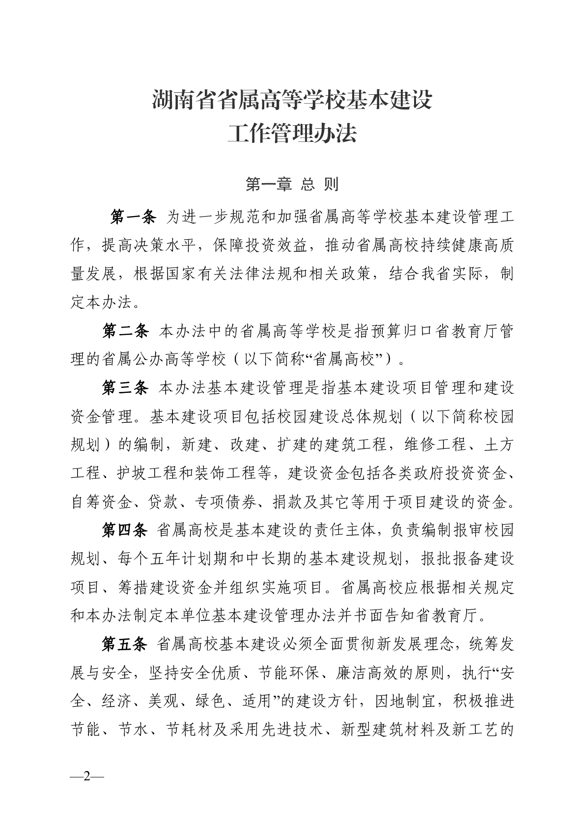 關(guān)于印發(fā)《湖南省省屬高等學(xué)校基本建設(shè)工作管理辦法》的通知