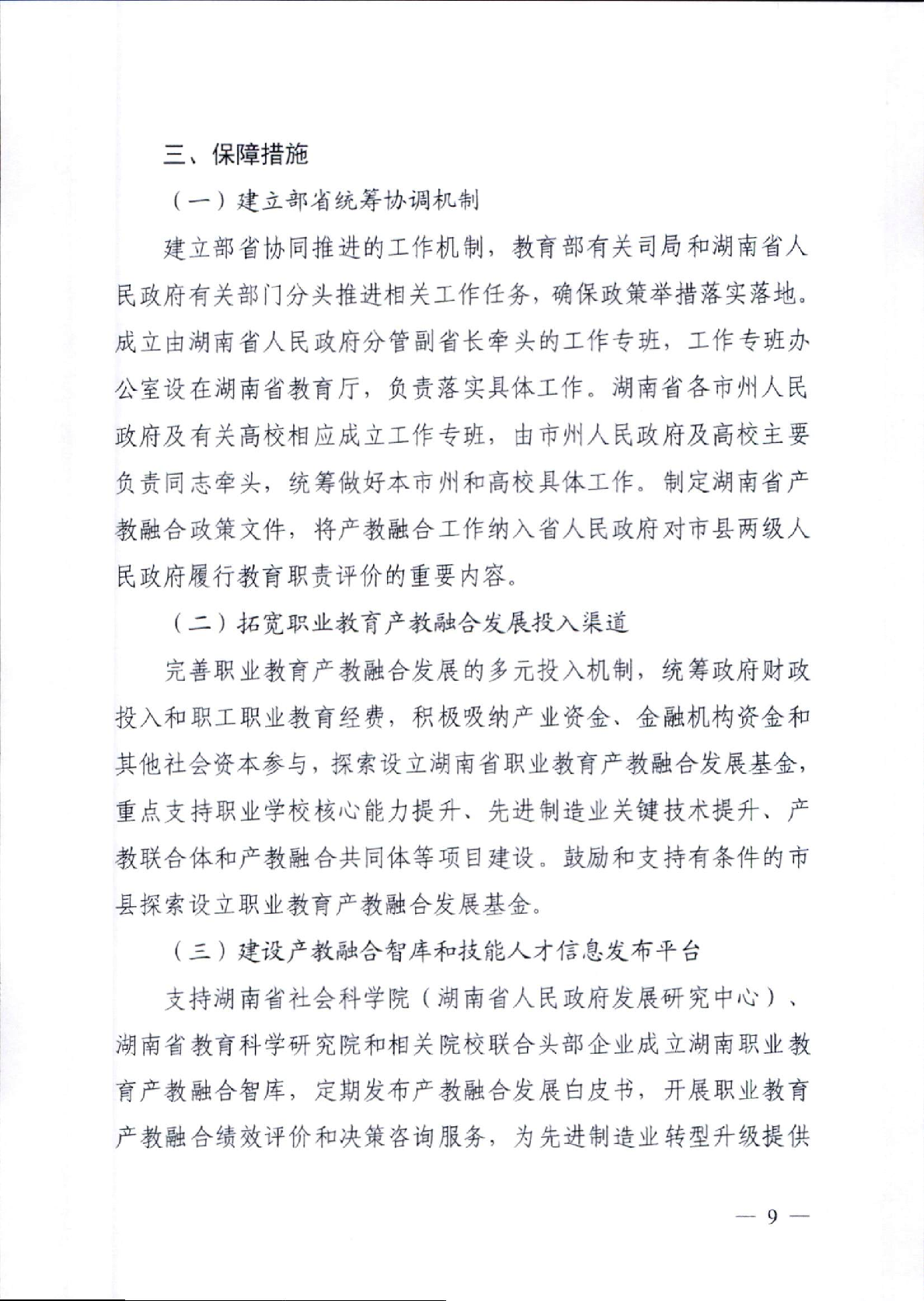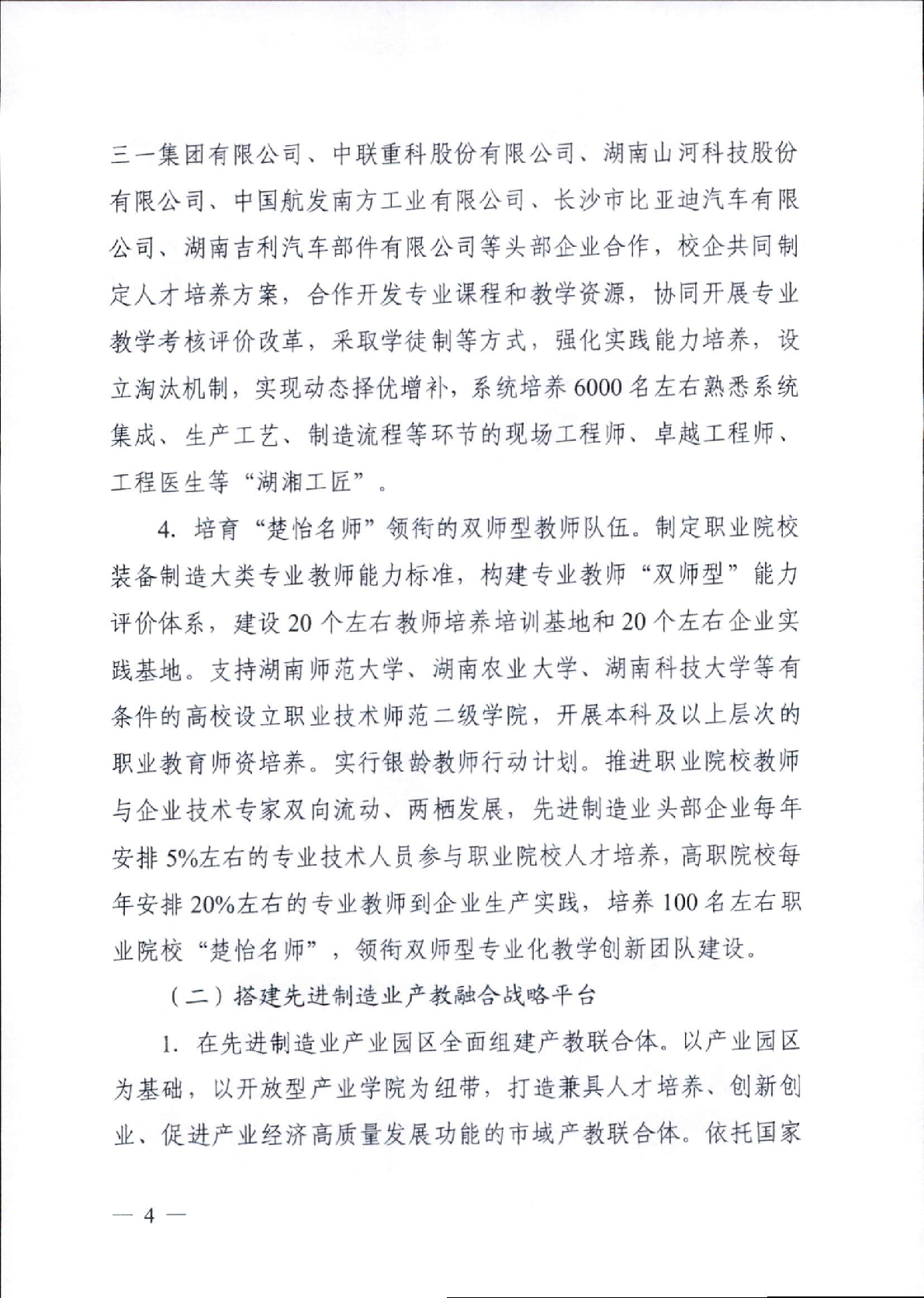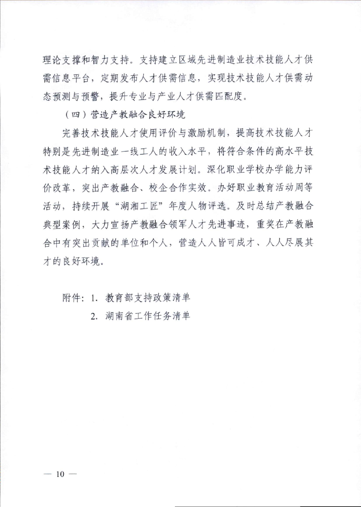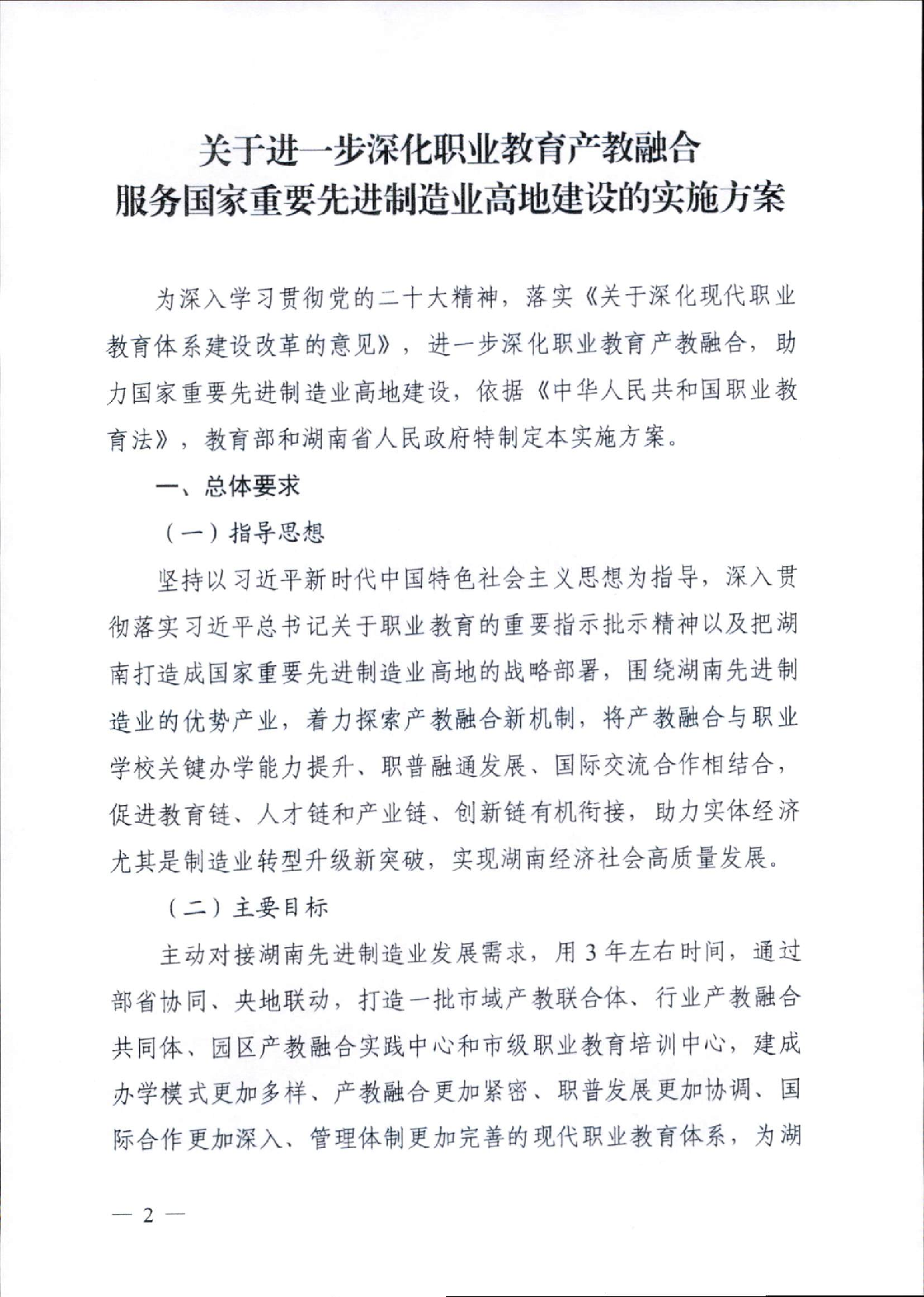 教育部 湖南省人民政府《關(guān)于進(jìn)一步深化職業(yè)教育產(chǎn)教融合服務(wù)國家重要先進(jìn)制造業(yè)高地建設(shè)的實(shí)施方案》