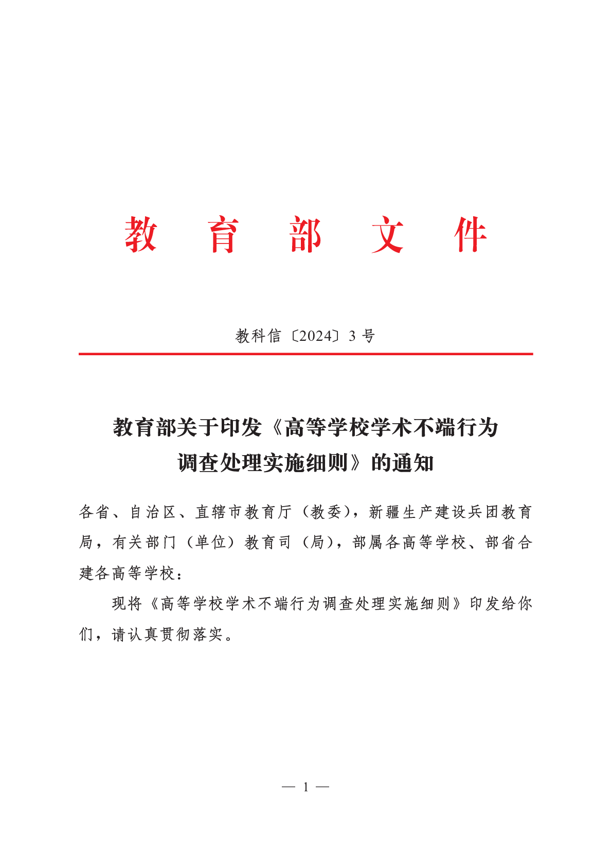 教科信〔2024〕3號+教育部關(guān)于印發(fā)《高等學(xué)校學(xué)術(shù)不端行為調(diào)查處理實(shí)施細(xì)則》的通知
