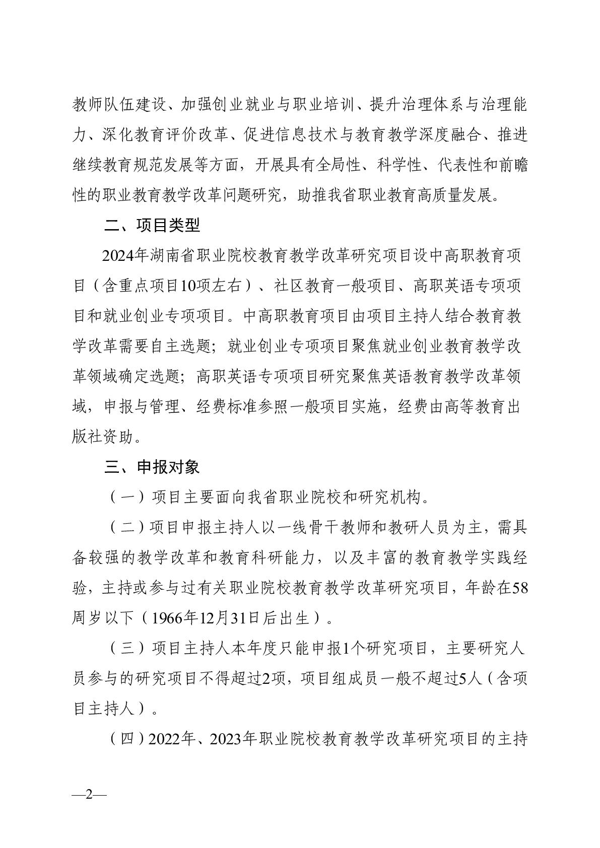 湖南省教育廳關(guān)于做好2024年湖南省職業(yè)院校教育教學(xué)改革研究項目申報工作的通知.pdf