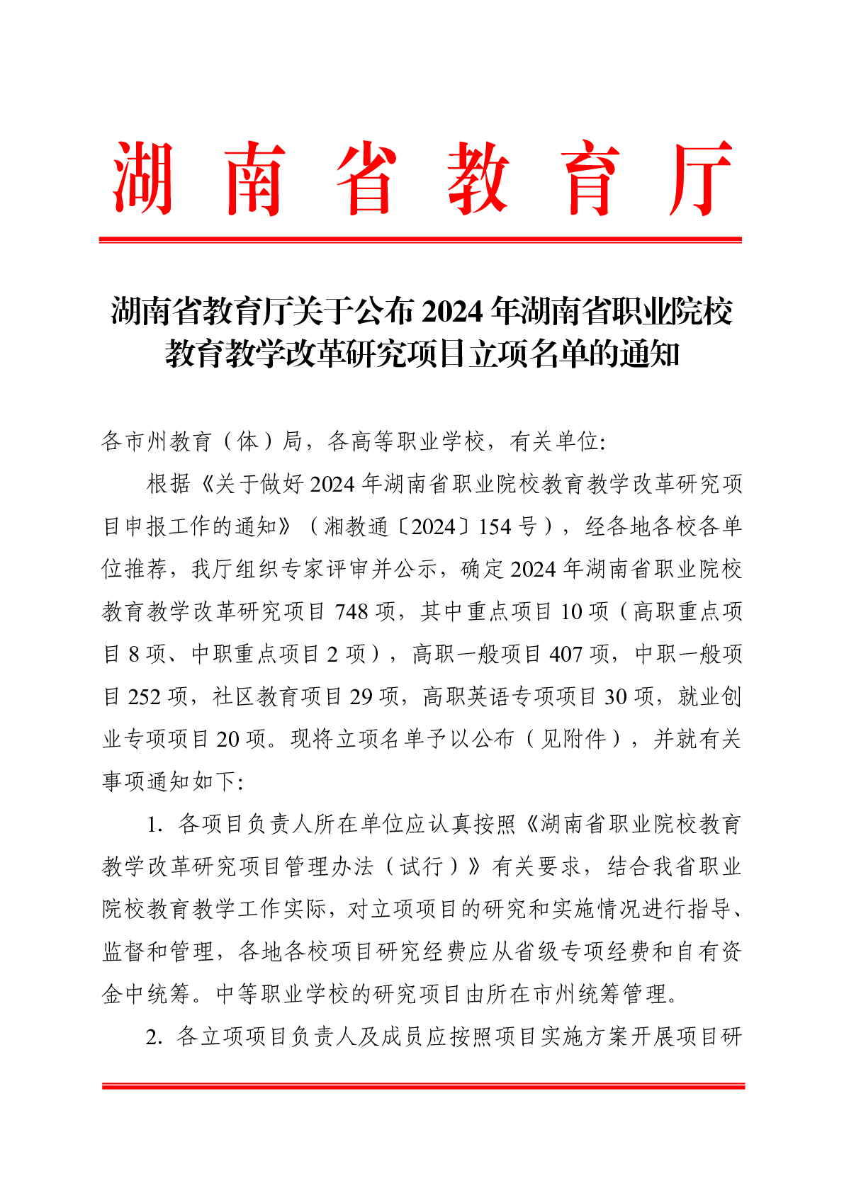 湖南省教育廳關(guān)于公布2024年湖南省職業(yè)院校教育教學(xué)改革研究項(xiàng)目立項(xiàng)名單的通知.pdf