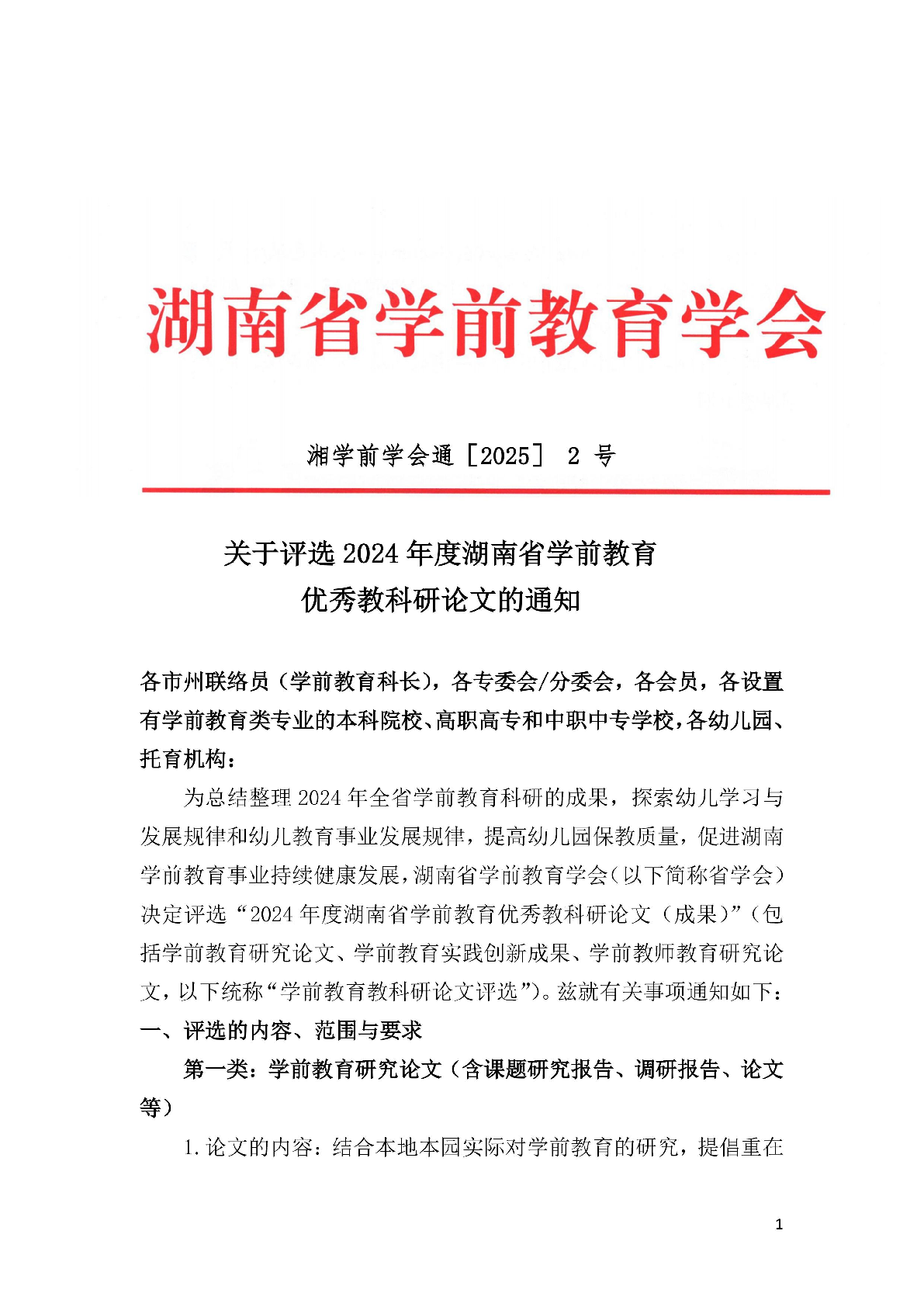 【2025】 2號(hào) 關(guān)于評(píng)選2024年度湖南省學(xué)前教育優(yōu)秀教科研論文的通知.pdf