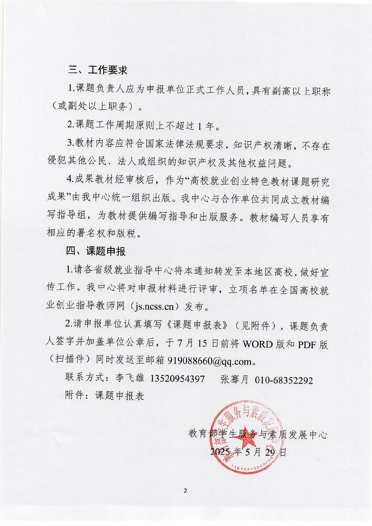 關于開展2025年高校就業(yè)創(chuàng)業(yè)特色教材課題申報工作的通知.pdf
