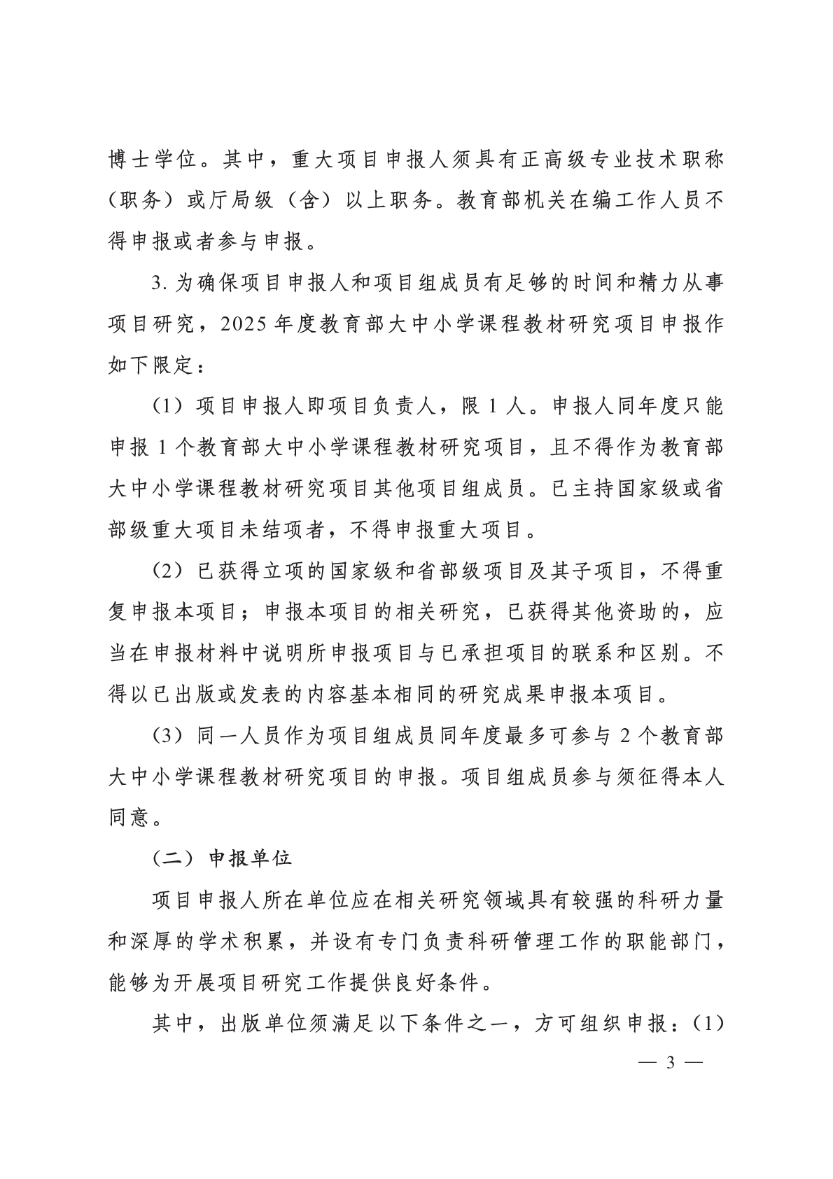 教材廳函〔2025〕7號(hào)+教育部辦公廳關(guān)于組織申報(bào)2025年度教育部大中小學(xué)課程教材研究項(xiàng)目的通知