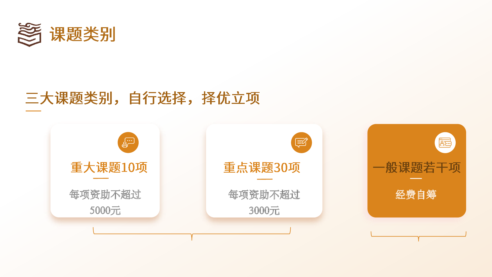 (四)課題分為重大課題、重點課題和一般課題,申報人可按類別自行申報。重大課題申報人須具有副高級(含)以上專業(yè)技術(shù)職稱(職務(wù))。