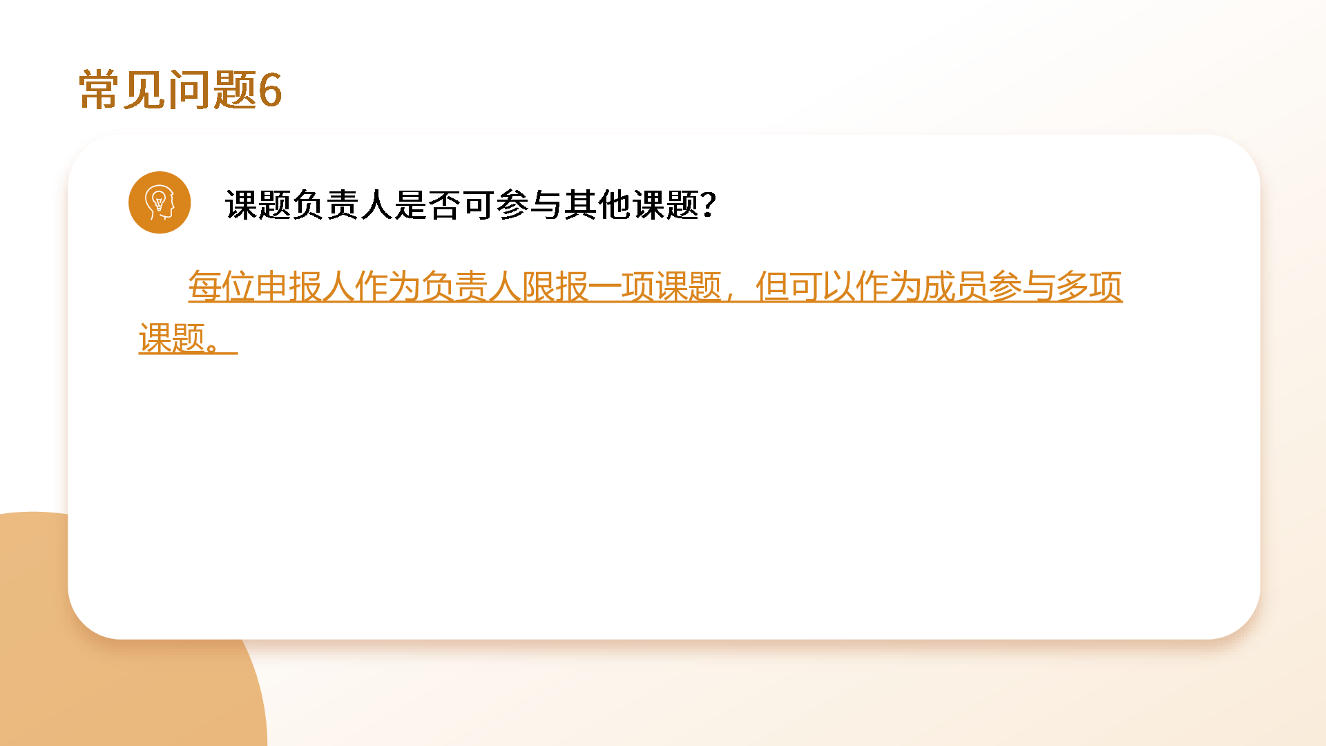 (六)課題負(fù)責(zé)人須真正承擔(dān)和負(fù)責(zé)組織、指導(dǎo)所申報課題的實施,具有獨立研究能力。每個課題負(fù)責(zé)人限報一項課題,每項課題限一位負(fù)責(zé)人。課題組成員應(yīng)結(jié)構(gòu)合理,分工明確。