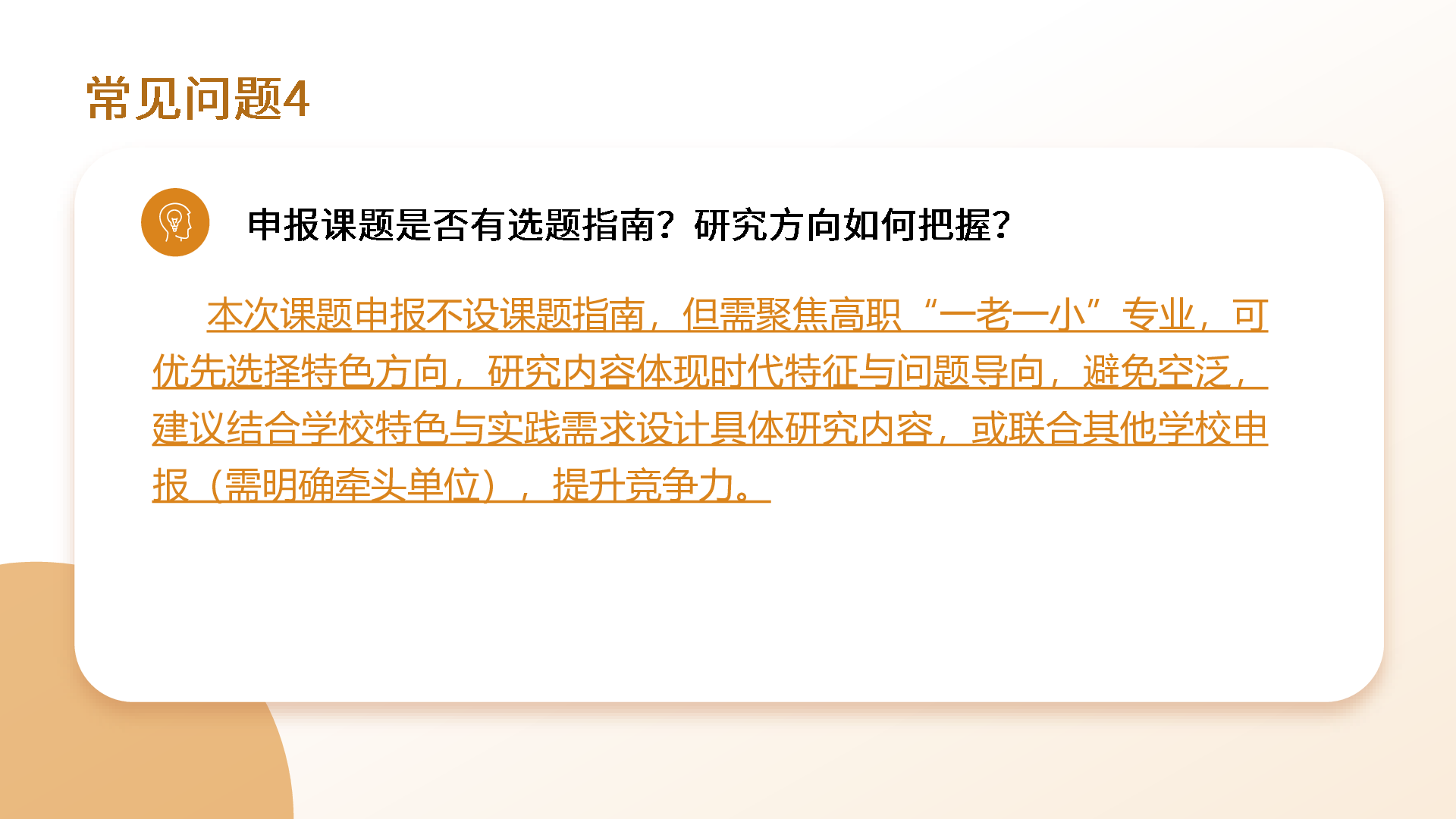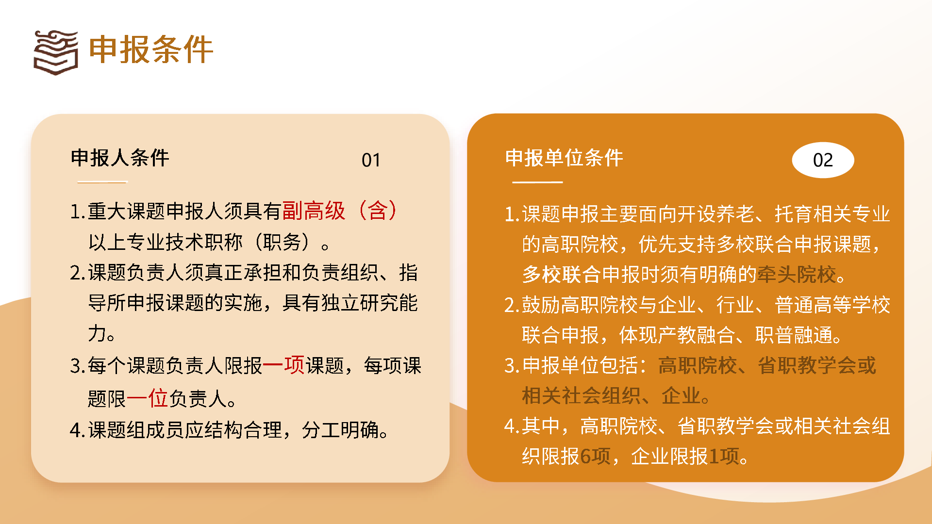 (五)課題申報主要面向開設(shè)養(yǎng)老、托育相關(guān)專業(yè)的高職院校,優(yōu)先支持多校聯(lián)合申報課題,多校聯(lián)合申報時須有明確的牽頭院校。鼓勵高職院校與企業(yè)、行業(yè)、普通高等學(xué)校聯(lián)合申報,體現(xiàn)產(chǎn)教融合、職普融通。